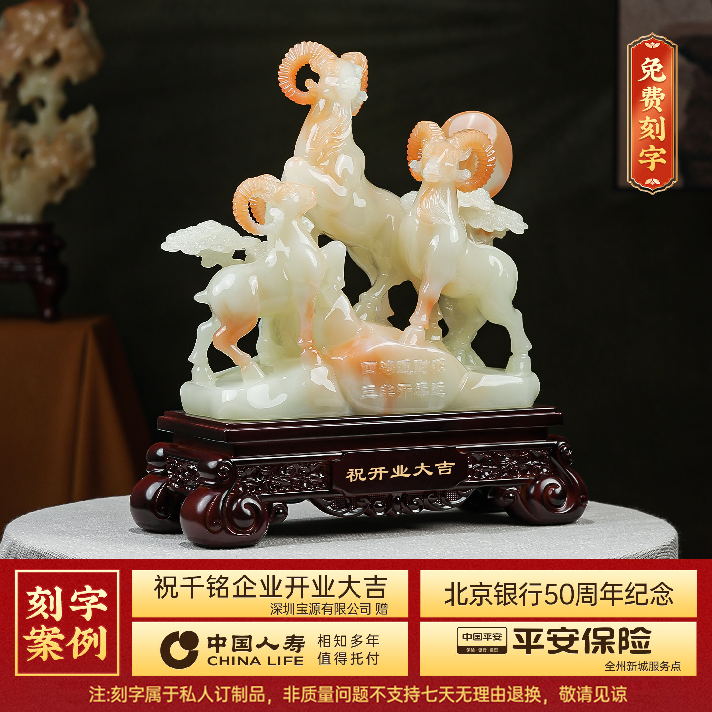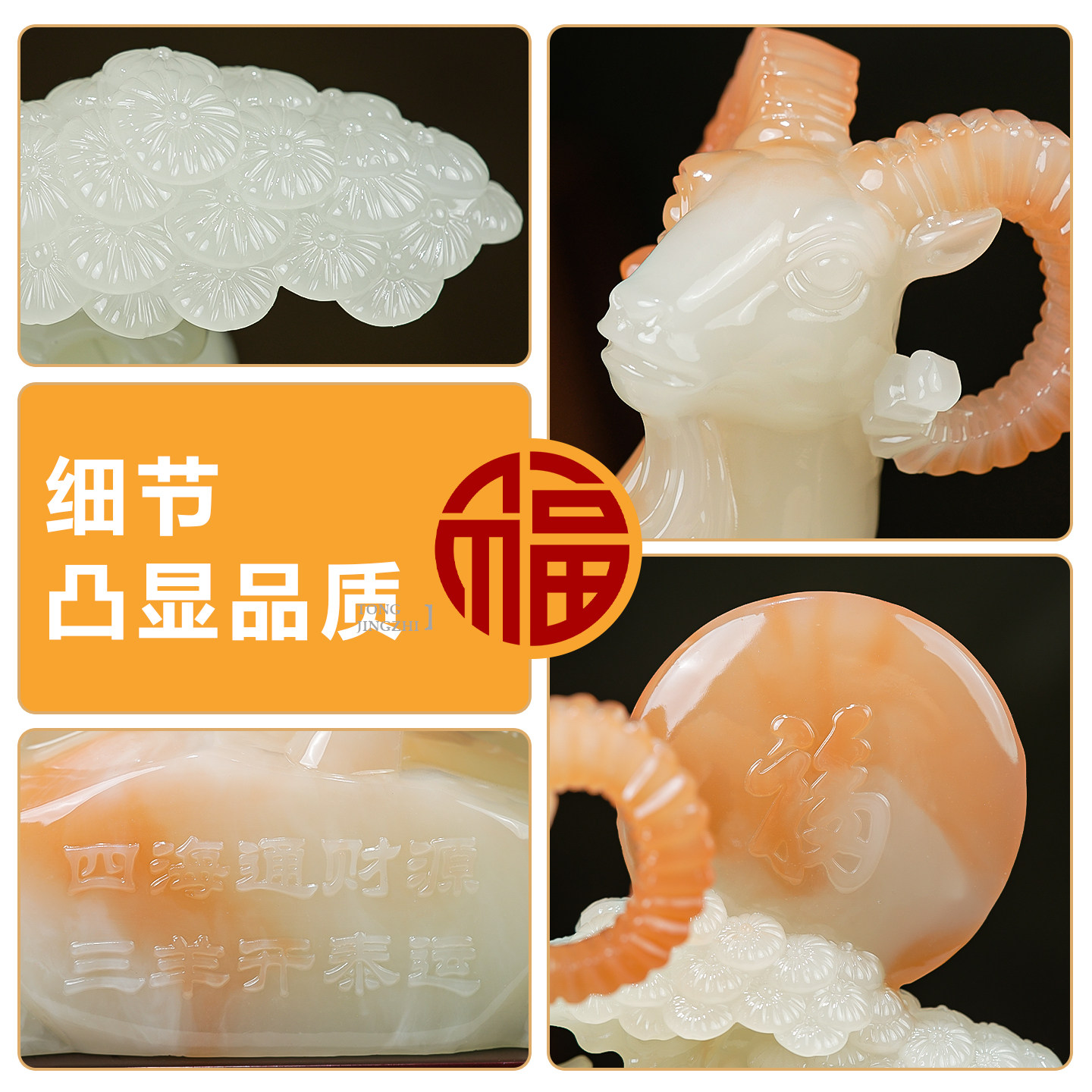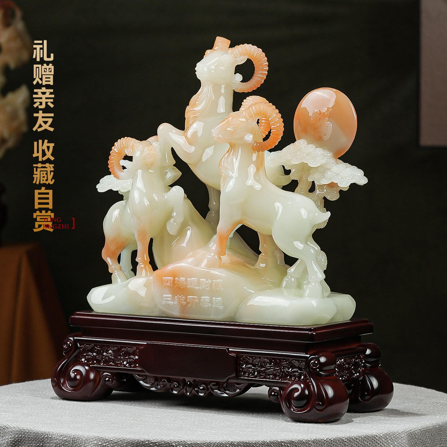 三羊开泰摆件招财玉石家居客厅玄关酒柜办公室装饰品乔迁开业礼物