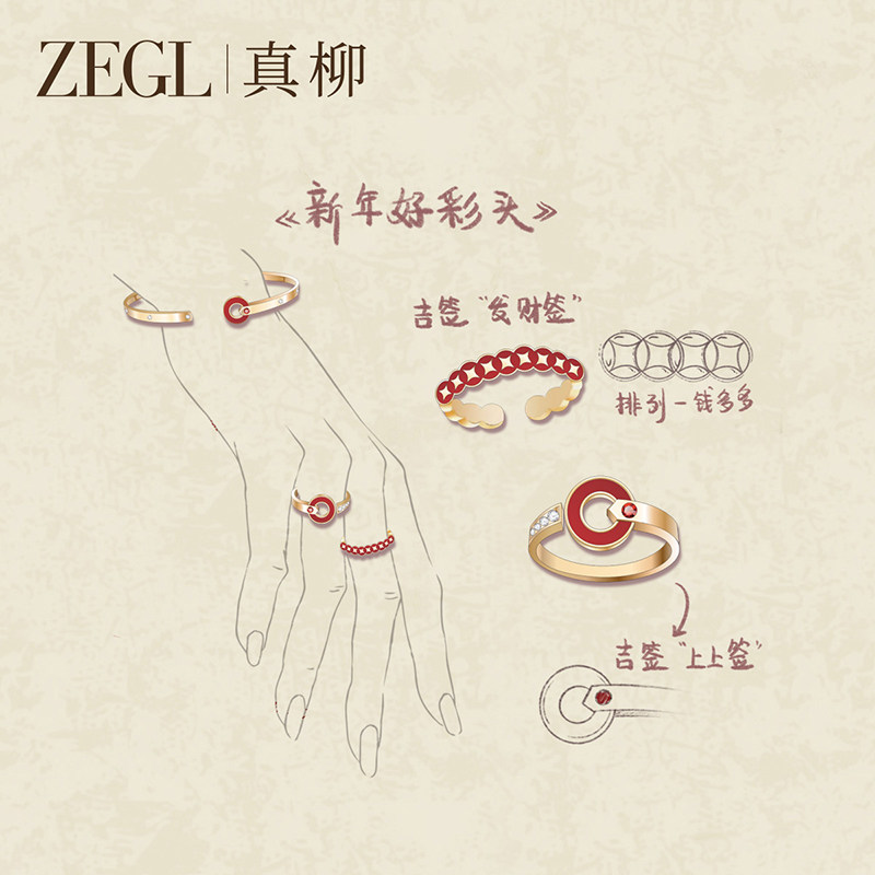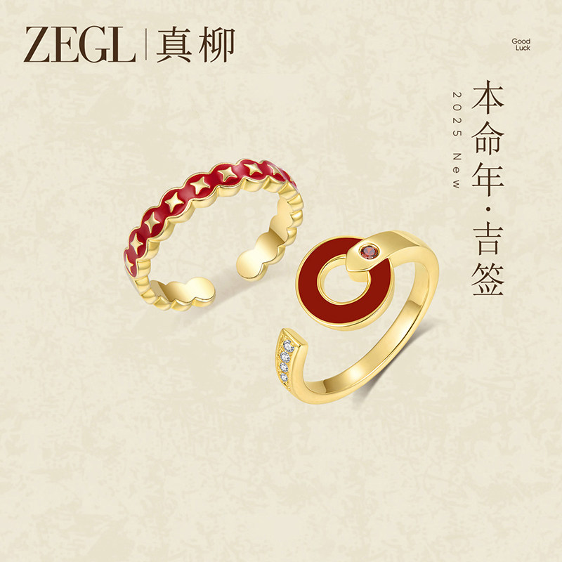 ZEGL设计师金色铜钱币戒指女小众设计新中式素圈春夏开口食指戒