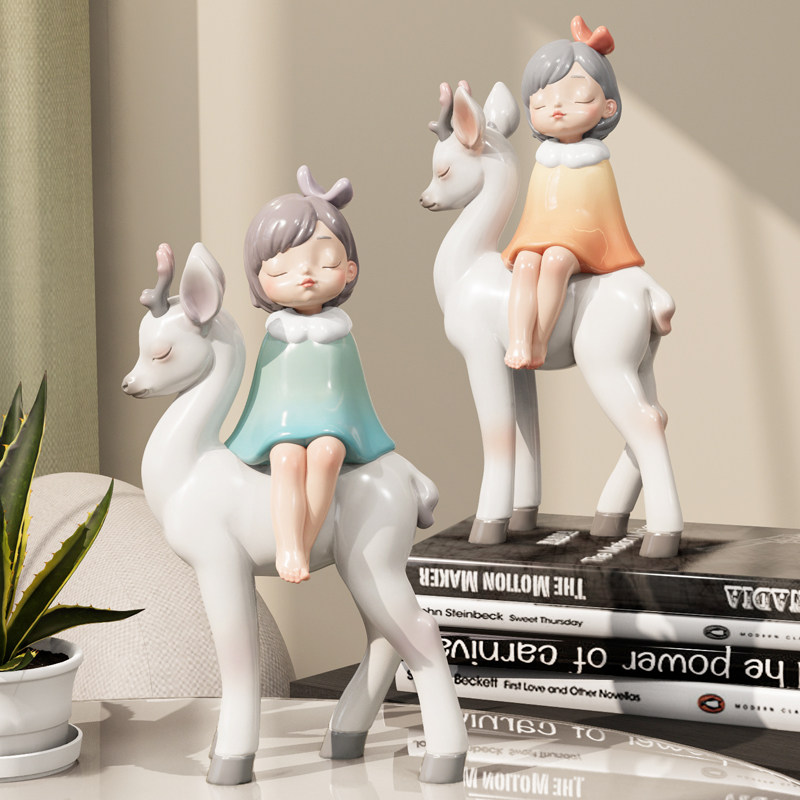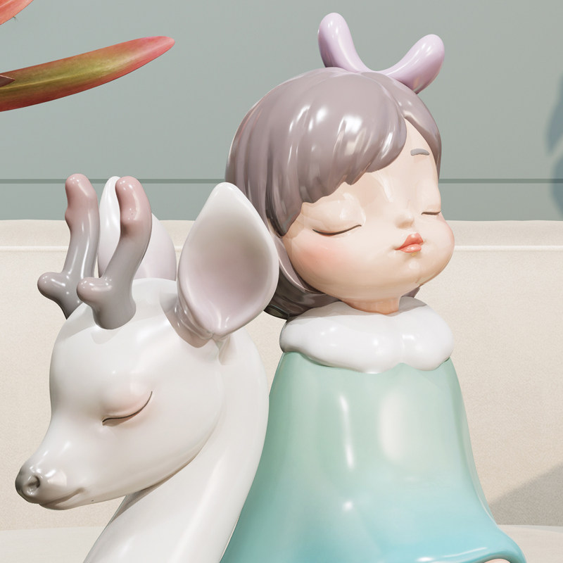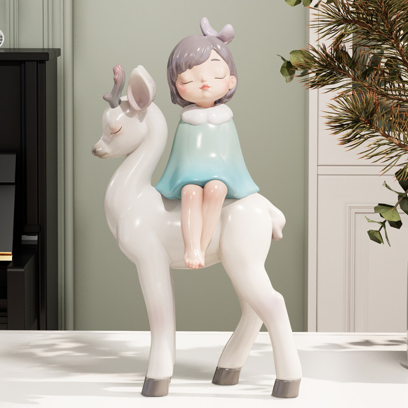 蓝色蜗牛可爱创意鹿摆件艺术卡通桌面卧室家居装饰品送女生的礼物
