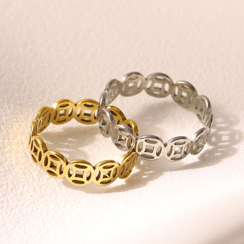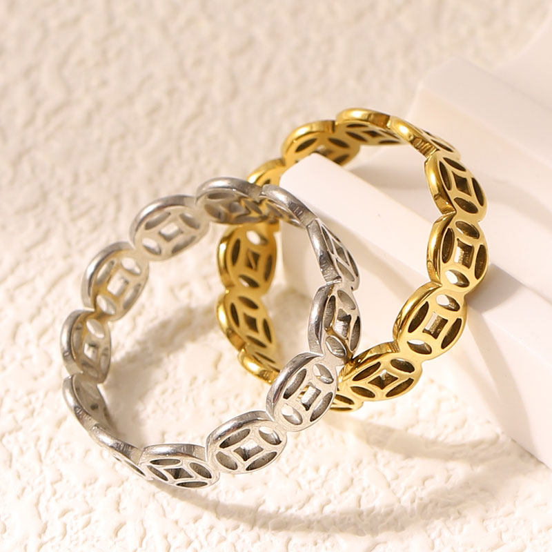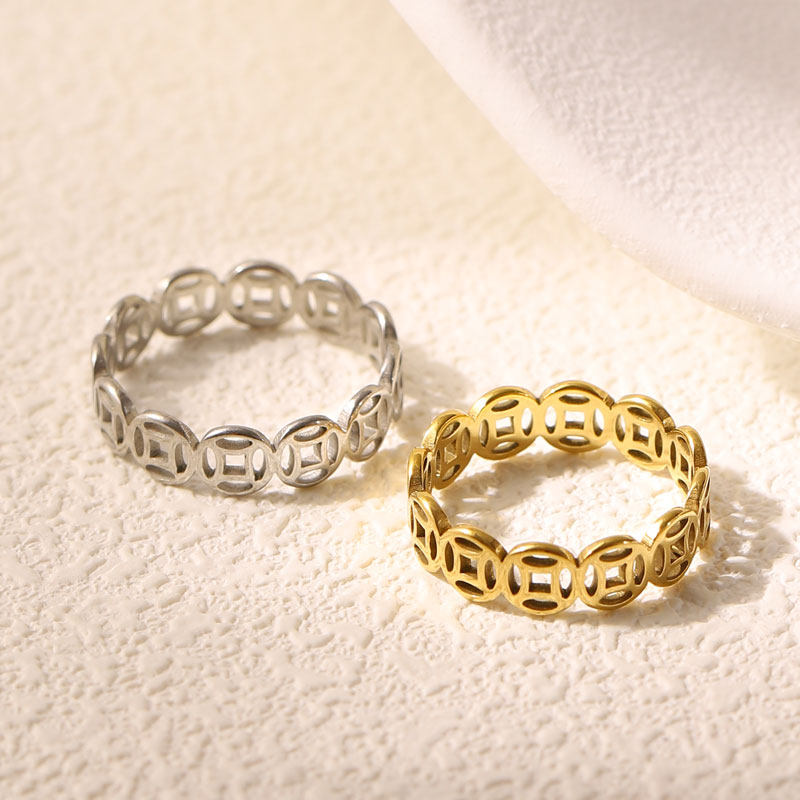 钛钢铜钱戒指女男士情侣对戒小众设计轻奢高级感食指指环款不掉色