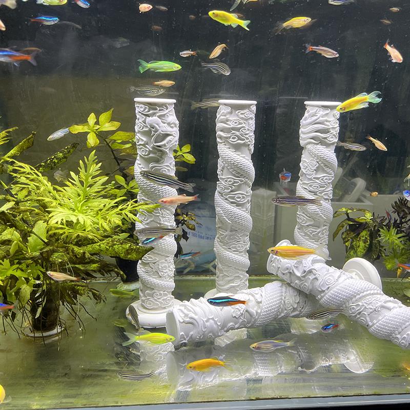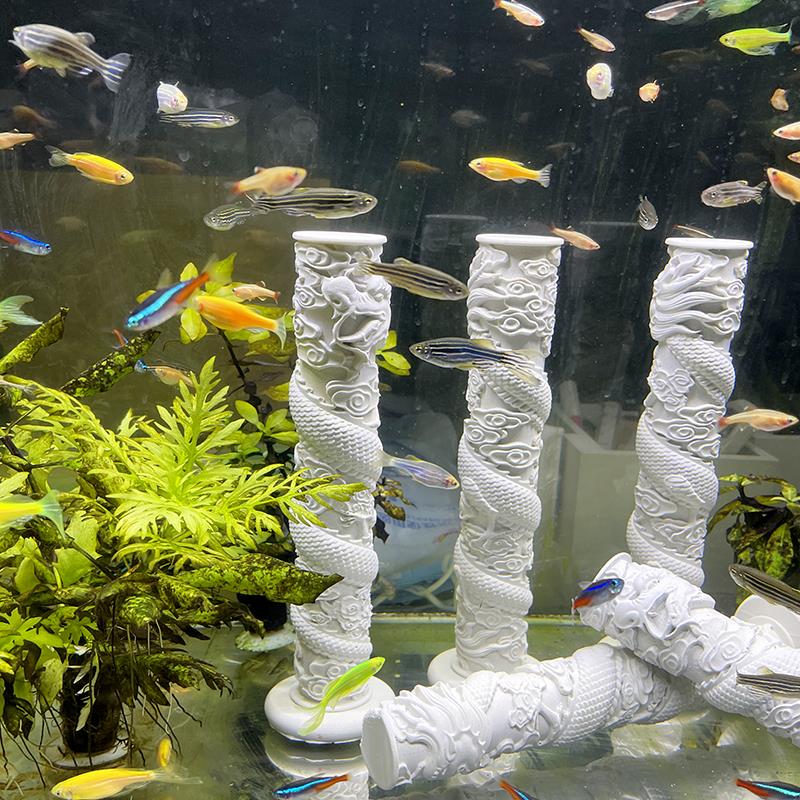 栩元 中式禅意水泥盘龙柱鱼缸造景摆件水族箱创意沉底微景观装饰