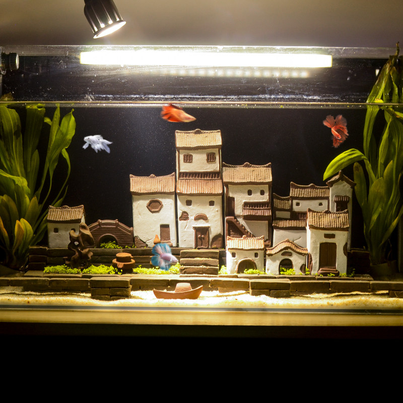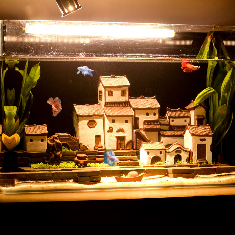 小鱼缸内装饰造景摆件江南水乡陶瓷古建筑中式房屋中国风房子模型