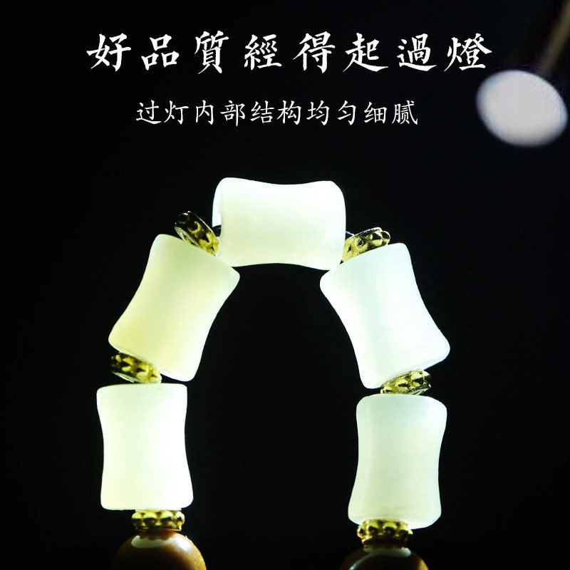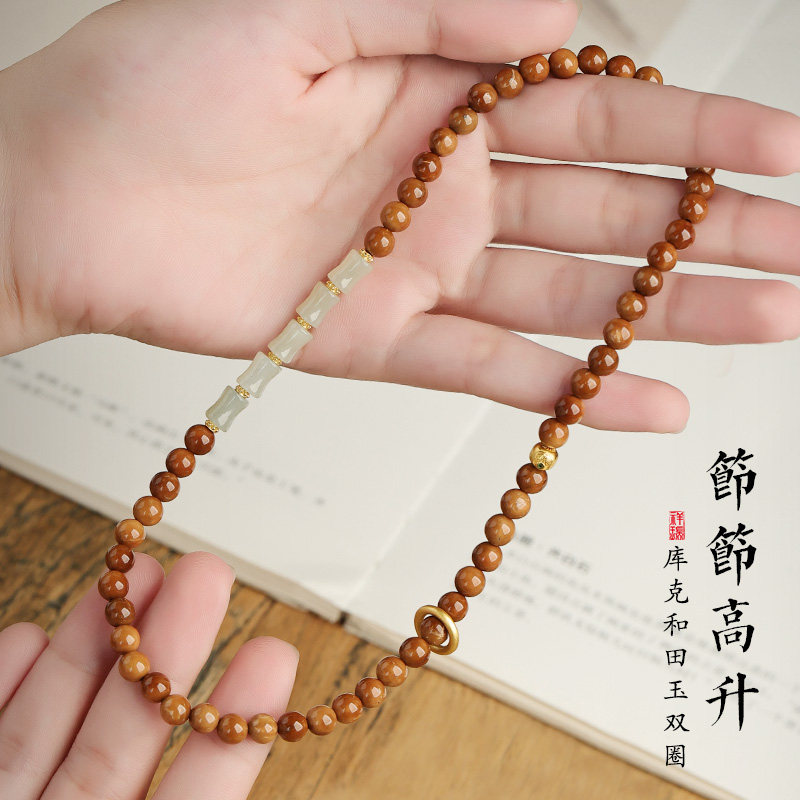 论檀库克菩提手链和田玉节节高升女士款高档原创饰品双圈佛珠手串