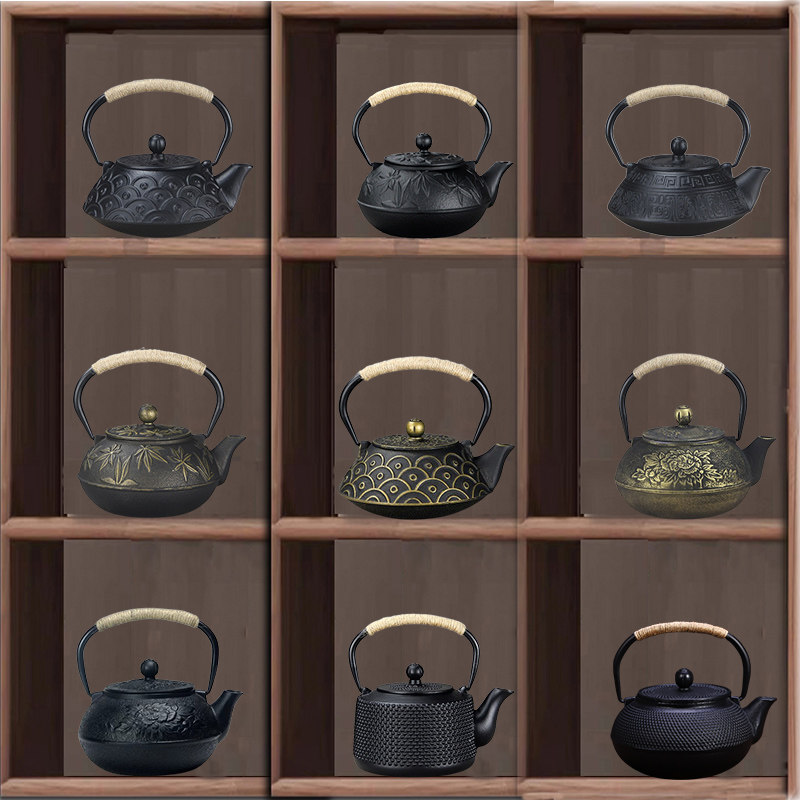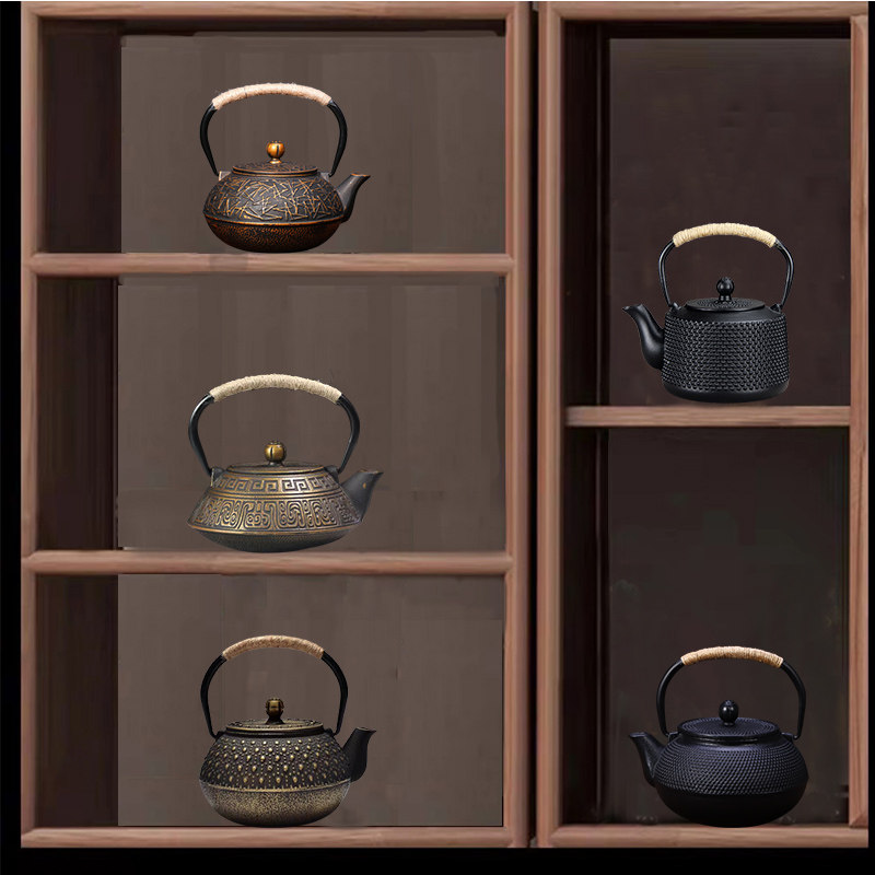样板房软装新中式家居博古架酒柜摆件铸铁壶茶壶茶叶罐茶道摆设