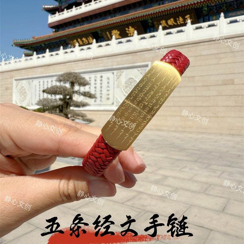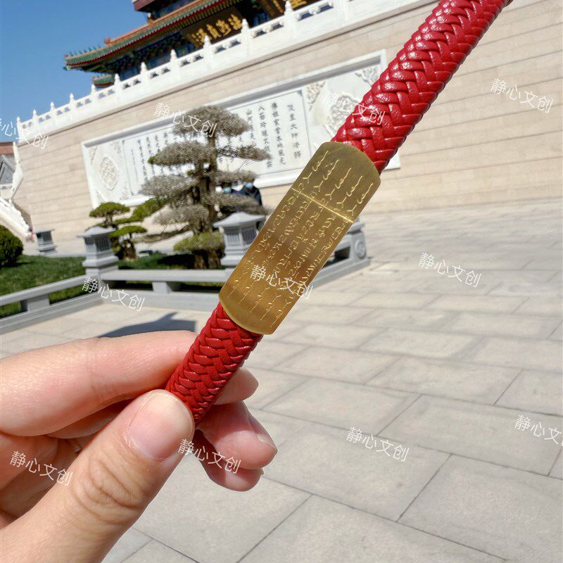 【五路财神皮绳手链】刻字莲花五条经文好运招财红色本命年饰品