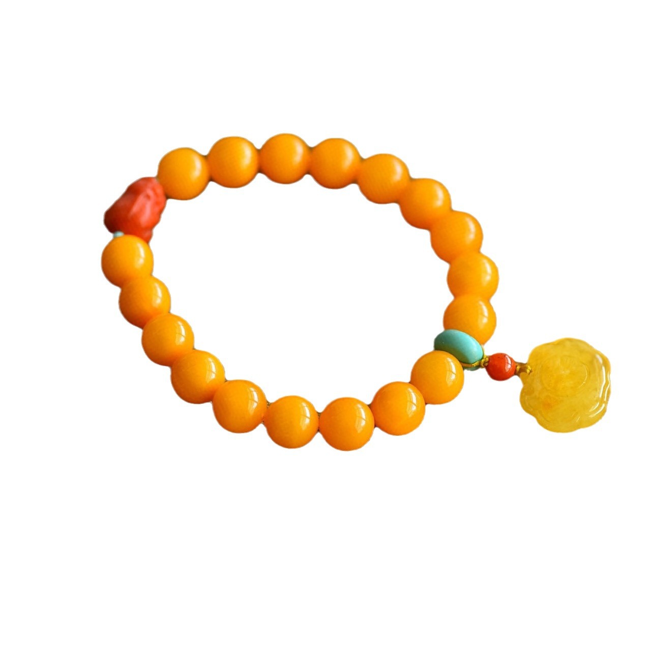 天然老蜜蜡手串蜡质浓厚蜜鸡油黄老花蜡尺寸9.1毫米重约11.4克