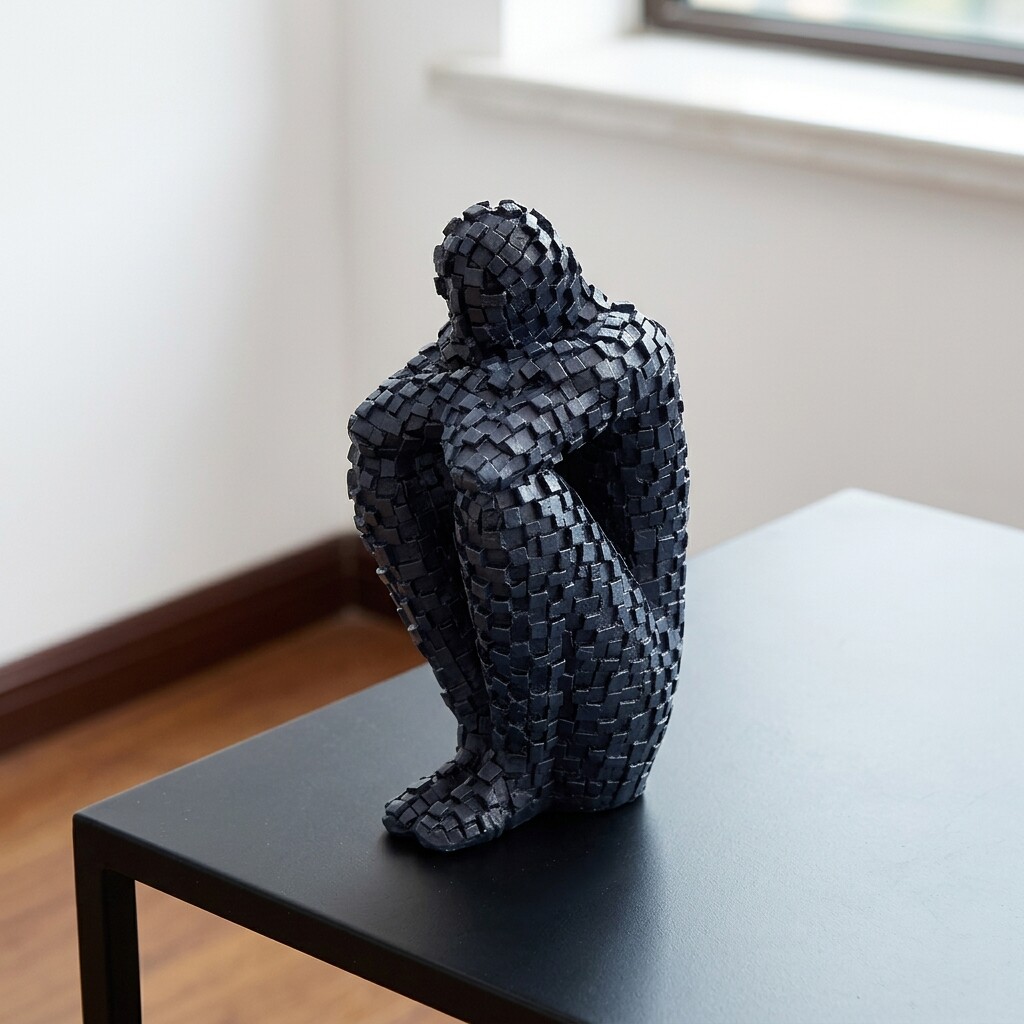 现代简约黑色几何人物雕塑摆件设计感装饰品客厅书房艺术品