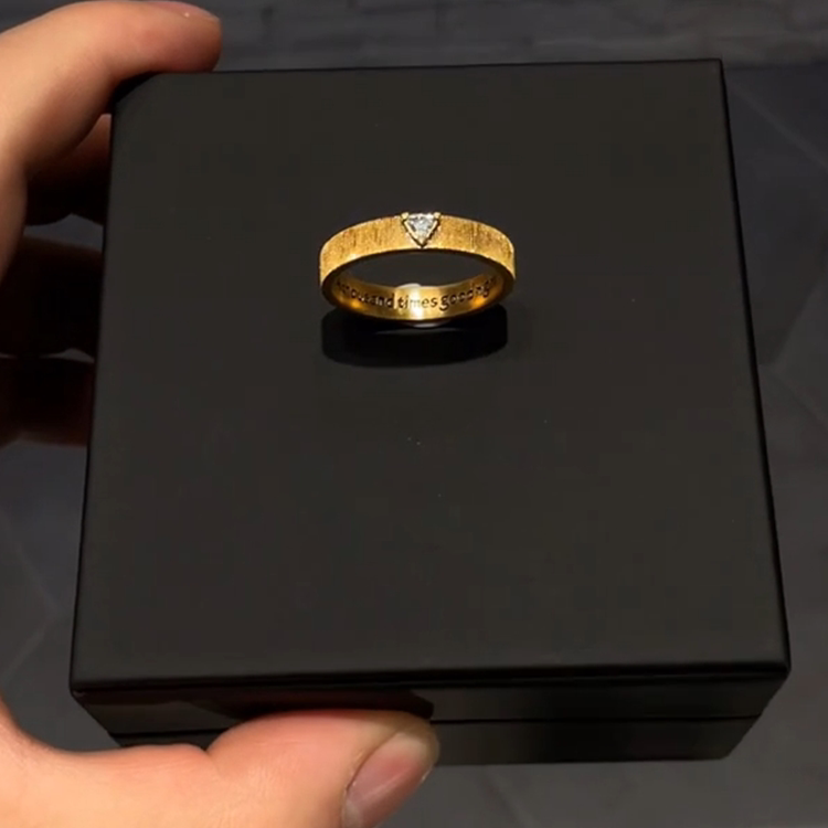 中古黑金做旧拉丝三角仿锆石戒指小众复古高级感港风食指戒冷淡风