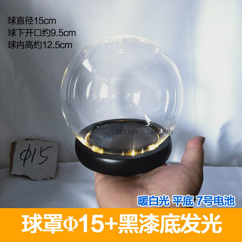 永生花圆球玻璃罩手办干花人偶防尘罩七彩闪烁白色底发光底座包邮