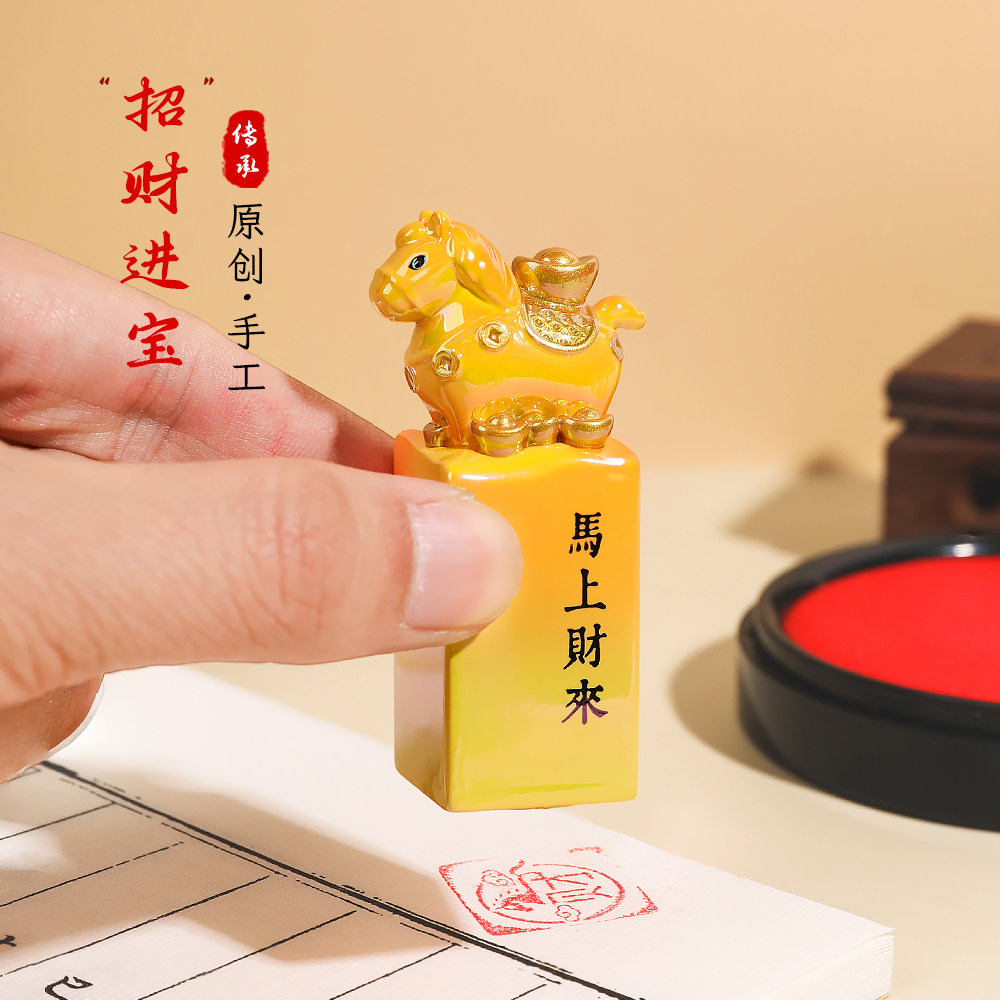 马年吉祥物摆件迷你小马印章盲盒马上有钱装饰2026新年本命年礼物