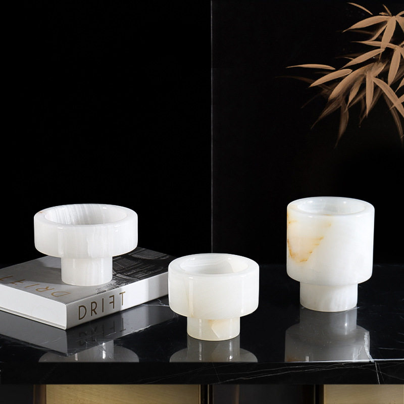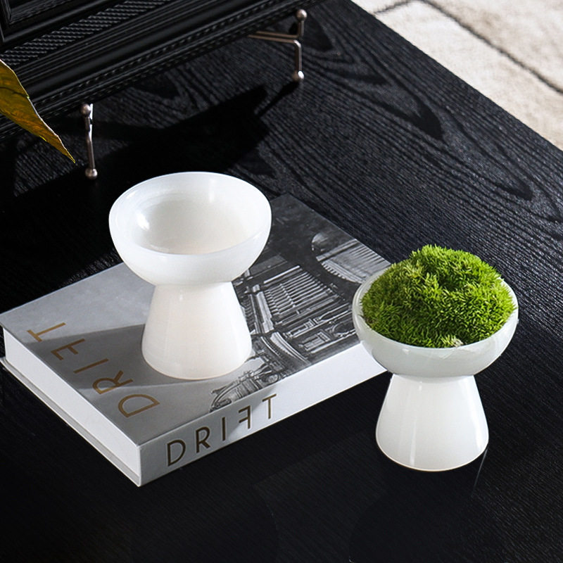 新中式大理石花器售楼处样板房青苔花盆质感艺术插花装饰桌面摆件