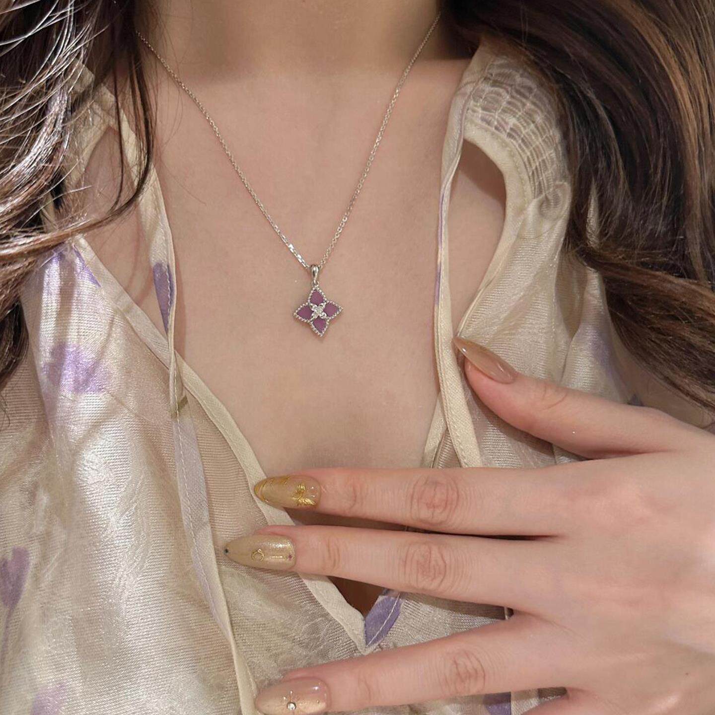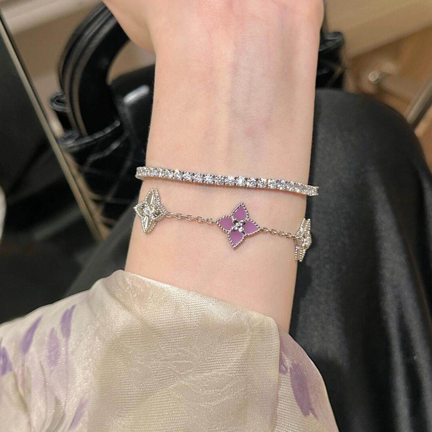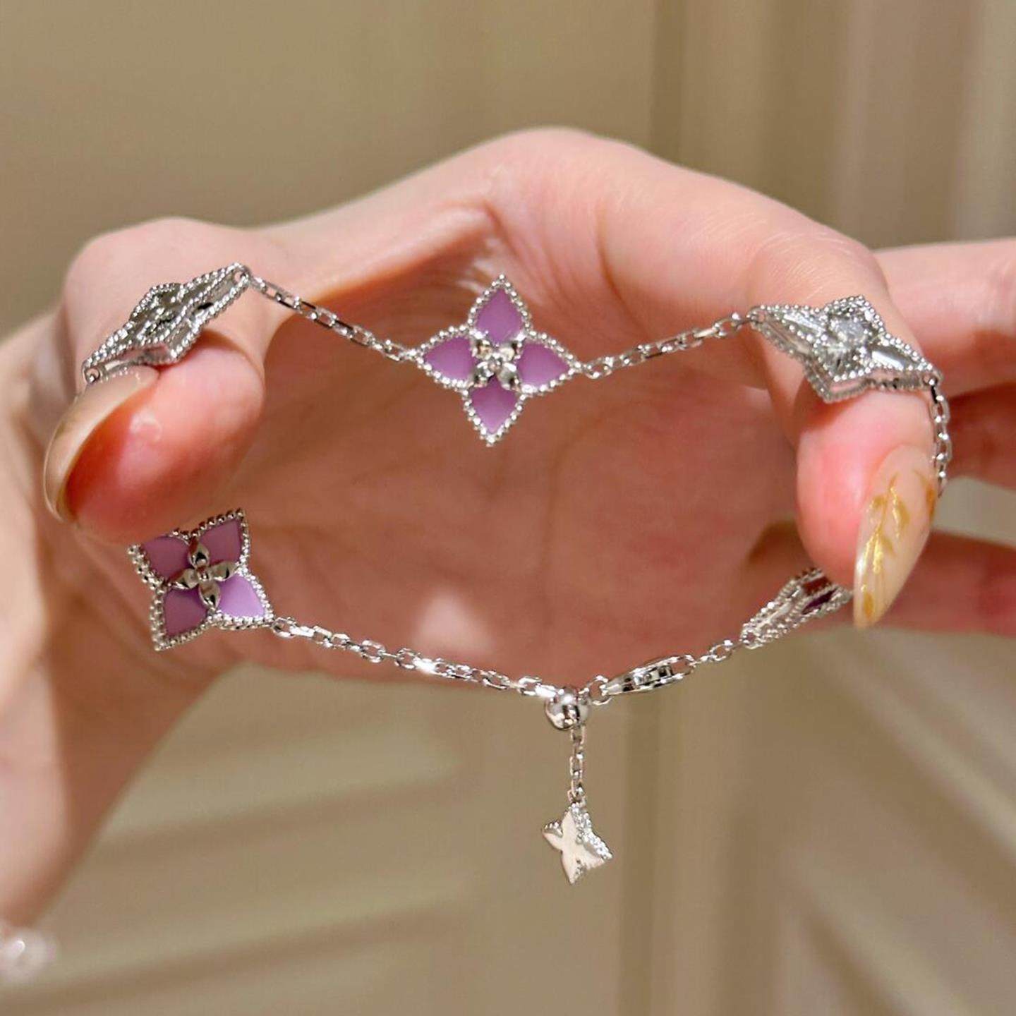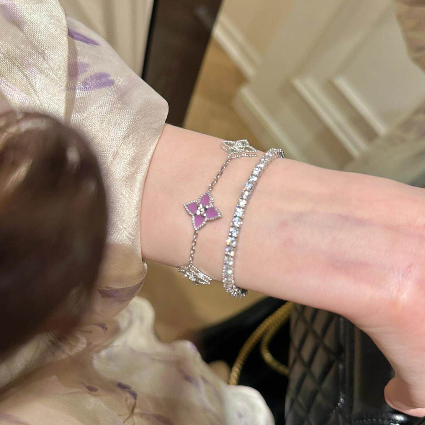 紫色仿玉髓镭射珠边四叶草手链小众设计高级感气质独特百搭手饰女