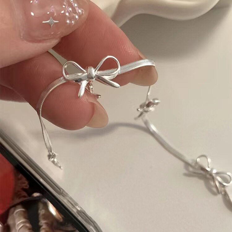 冷感美女 甜酷银色蝴蝶结choker项链女小众设计感高级蛇骨链项圈