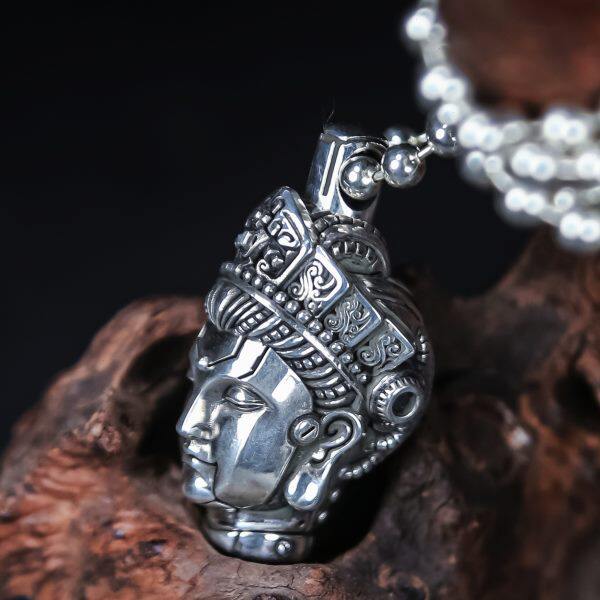 渡鸦默物系列原创文玩机械饰升》佛头配《传藏手工珠925银飞吊坠