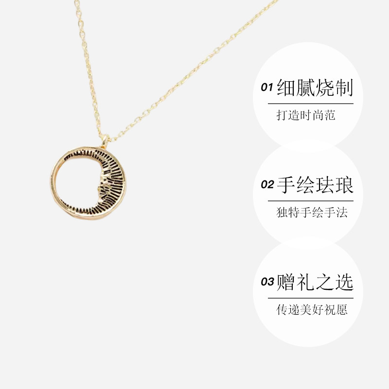 【自营】Fable法式西方黑色珐琅新月亮项链轻奢戒指ins锁骨链女