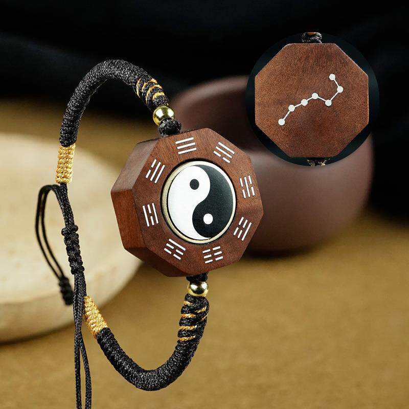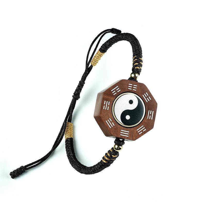 枣木镶银手串道家饰品太极手牌转运檀木高品质真货男女复古镶嵌