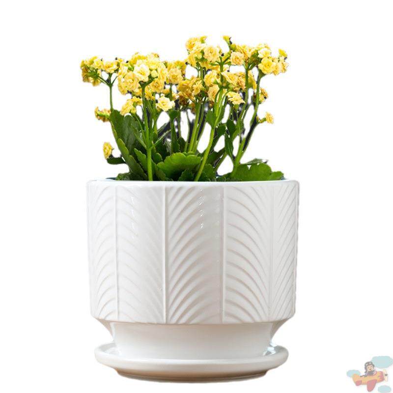 花盆陶瓷创意大号带托盘家用绿萝多肉花盆白色植物小花盆