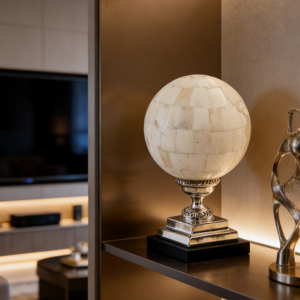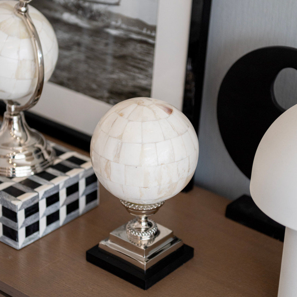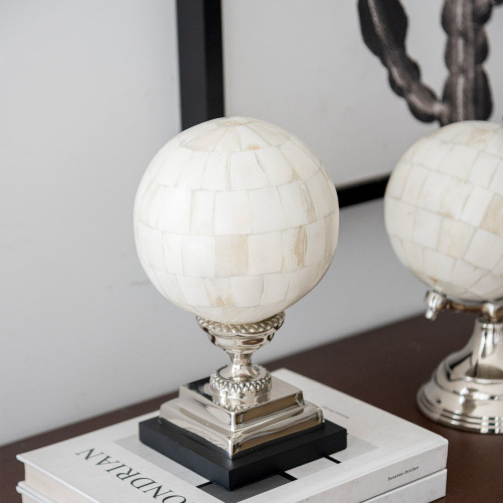 印度进口白色牛骨拼接马赛克球体艺术摆件现代风格家居桌面装饰品