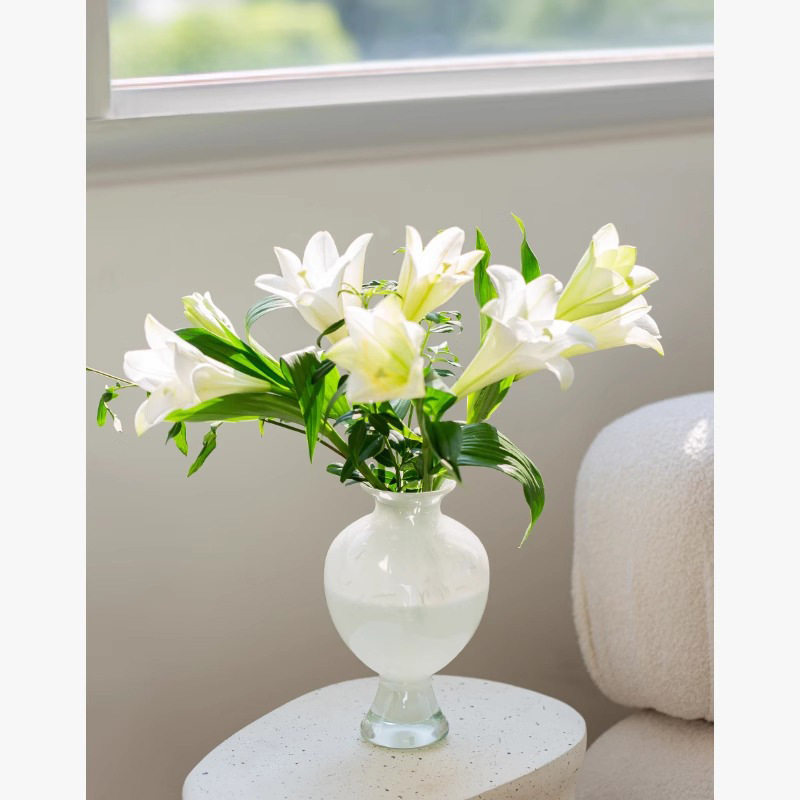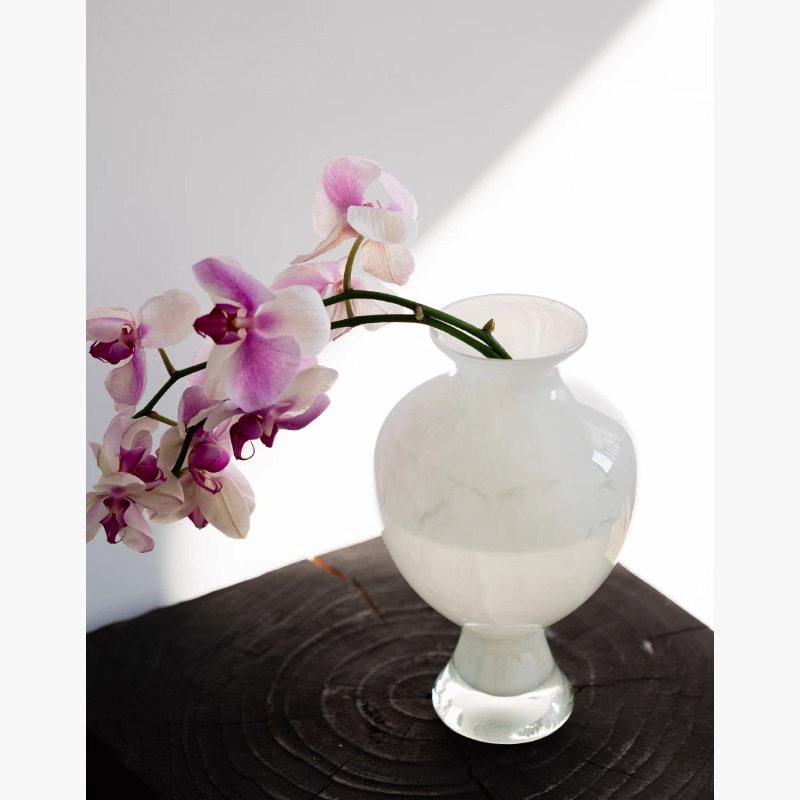 艺术白色琉璃花瓶小口大肚瓶新中式水养高脚花器半然家居玻璃摆件