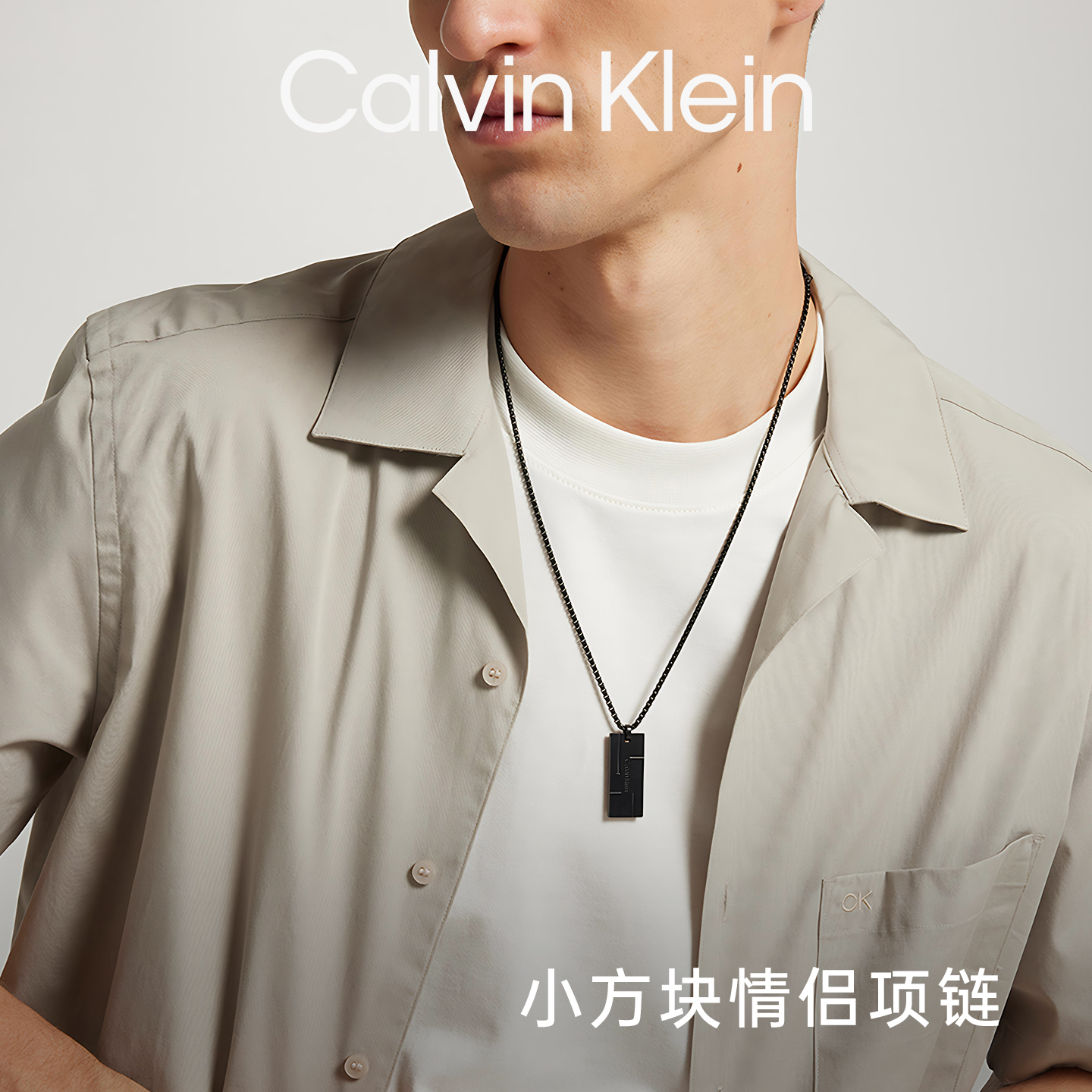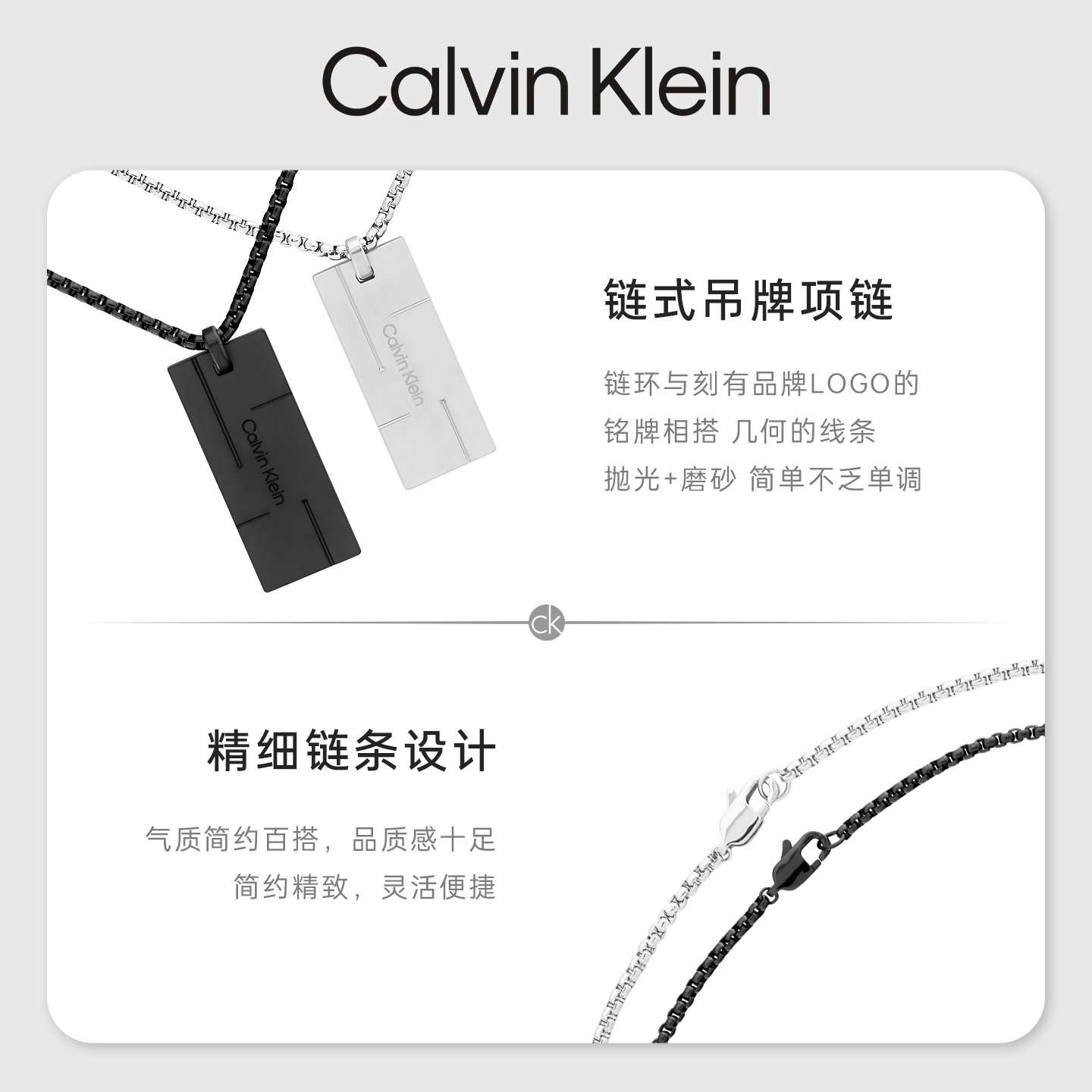 Calvin Klein/凯文克莱CK项链男小方块军牌男士项链礼物送男友
