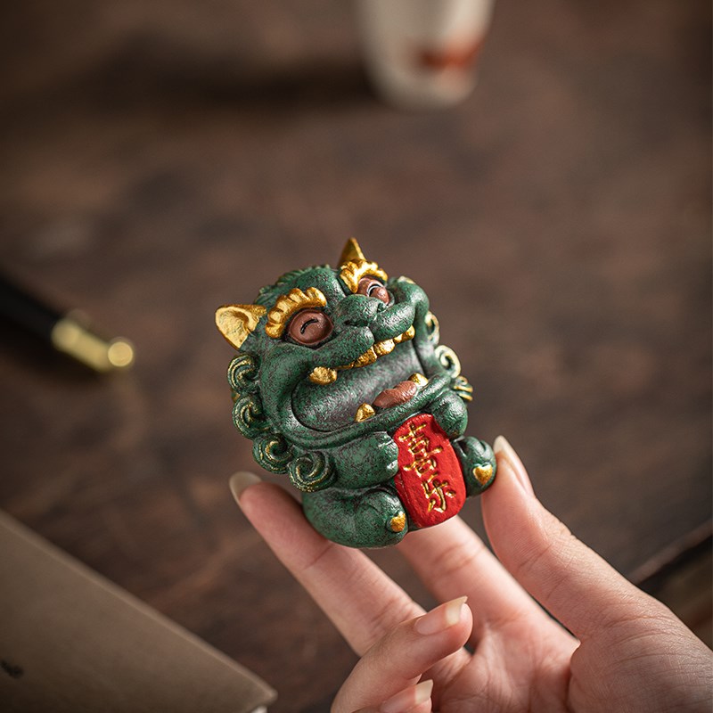 中式国潮文创瑞兽醒狮笔搁笔架书房桌面摆件净心喜乐一对礼盒装饰