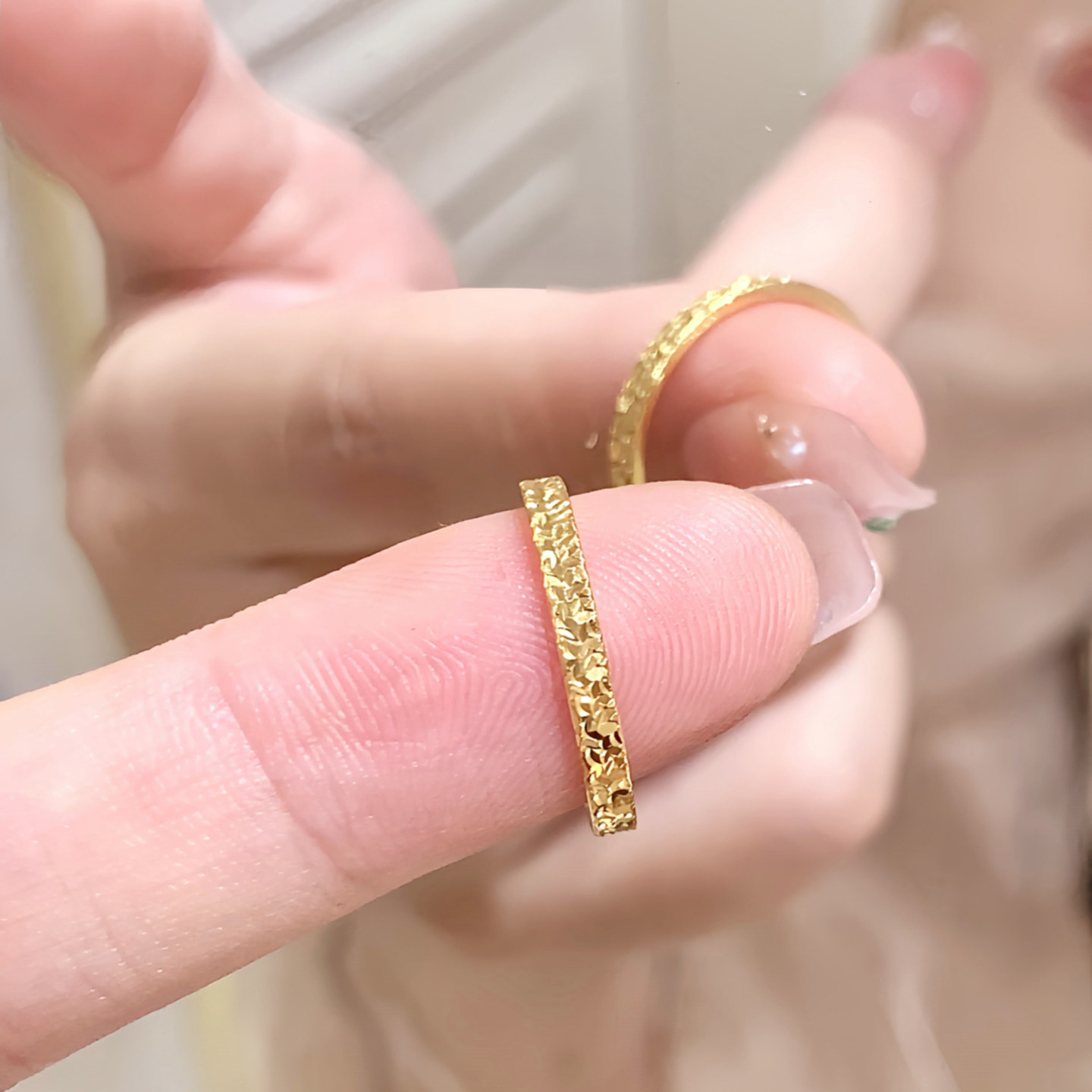 潮港福18K金碎冰冰戒指 女纯银满天星素圈指环黄金碎碎金轻奢送礼