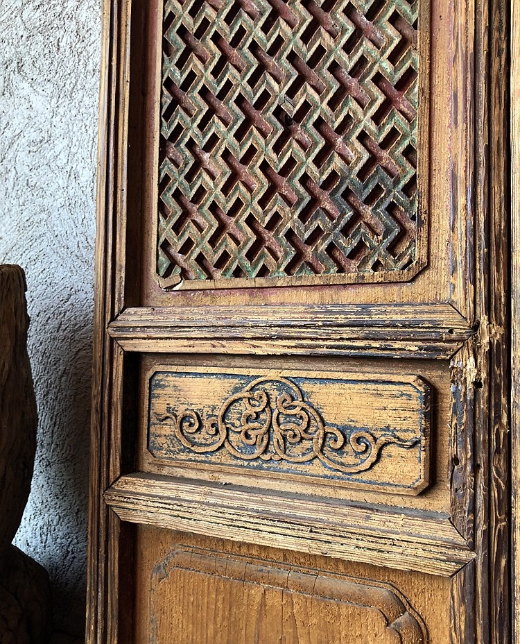 雕花木门摆件 长方形两片装实木门窗 屏风老物 书房 茶室隔断中式