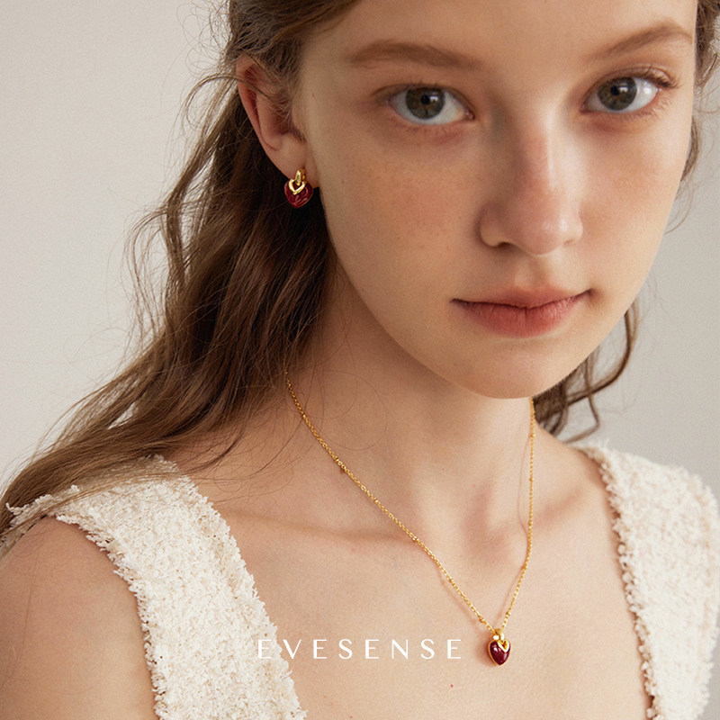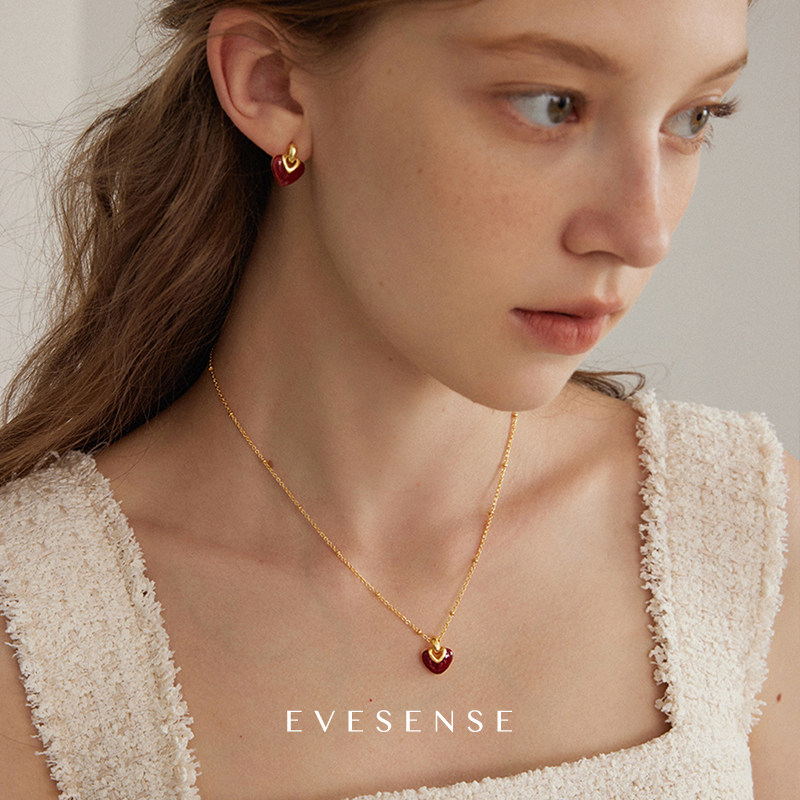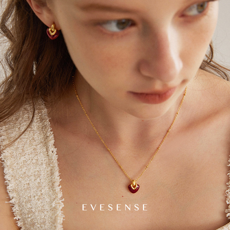 EVESENSE原创告白系列红色珐琅爱心项链高级感法式简约新款锁骨链