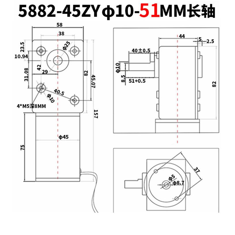 5882-45zy蜗轮蜗杆直流自锁减速电机大扭矩低速12V24V调速马达