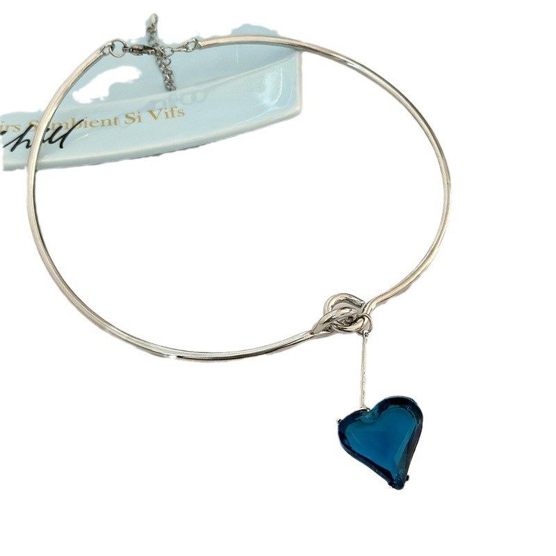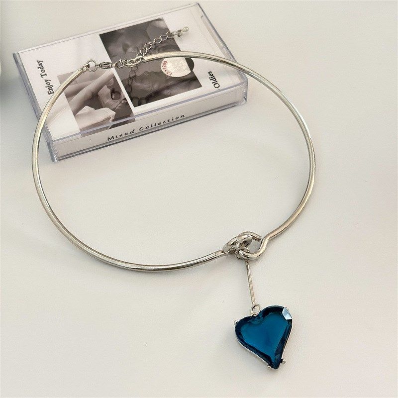 韩国时尚蓝色水钻爱心吊坠拼接项圈 气质百搭高级感锁骨链配饰女