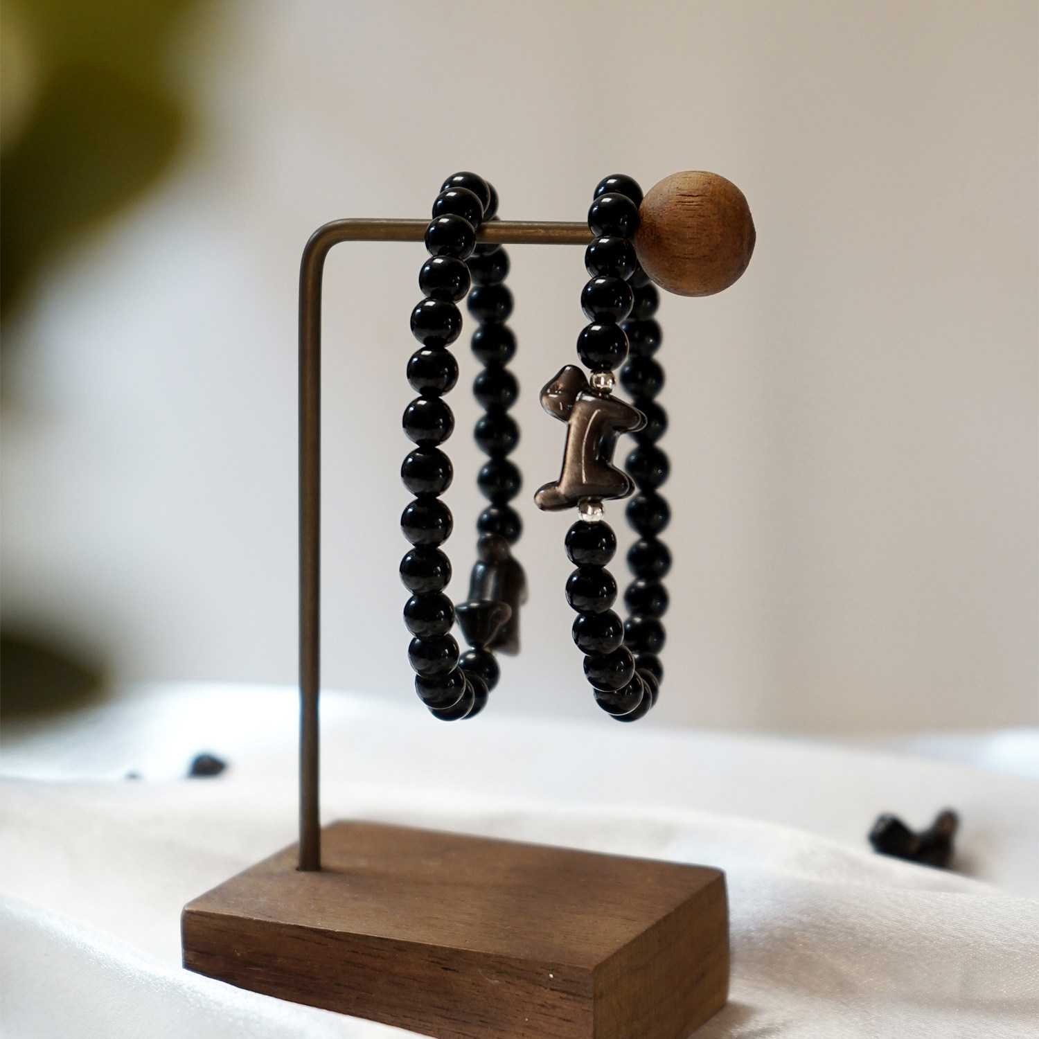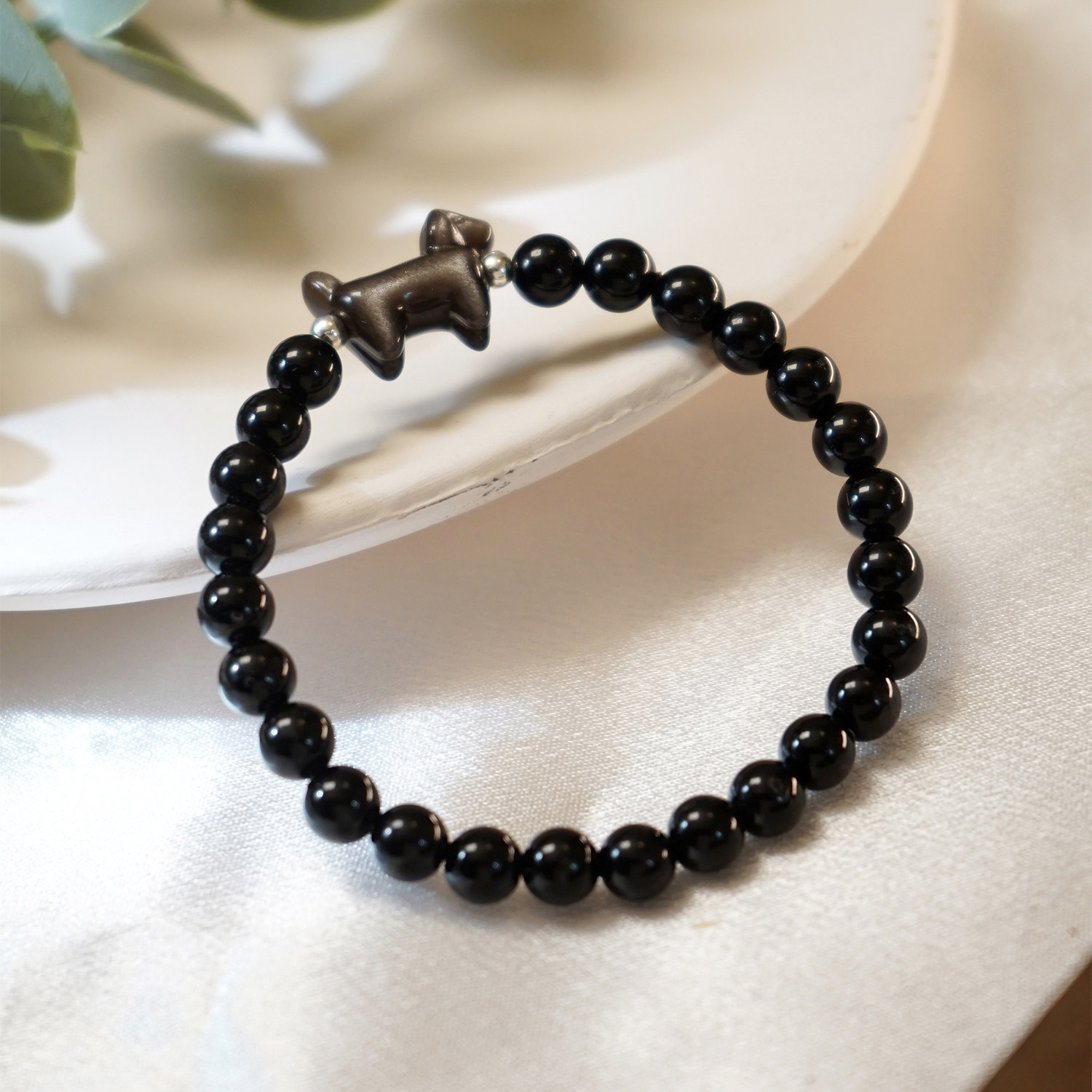10A级正品天然黑曜石手链银曜石腊肠狗男女本命年招财单圈手串
