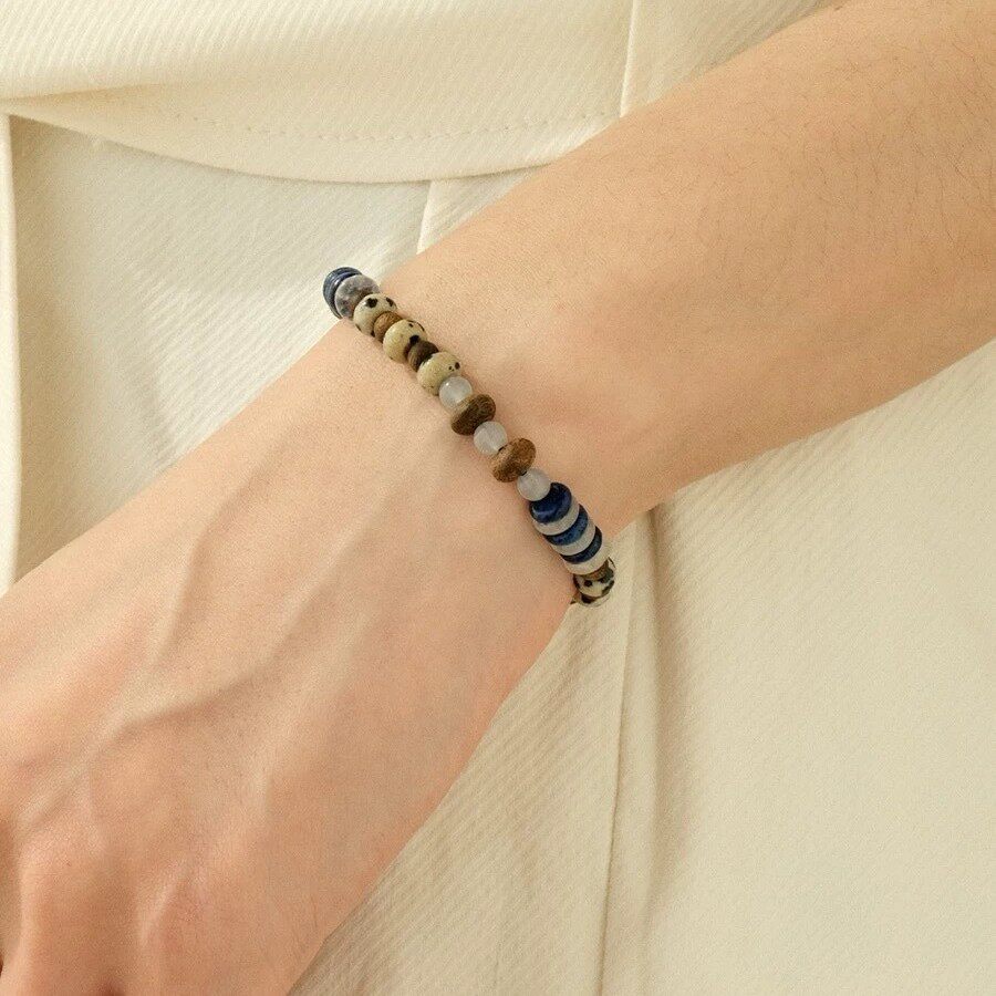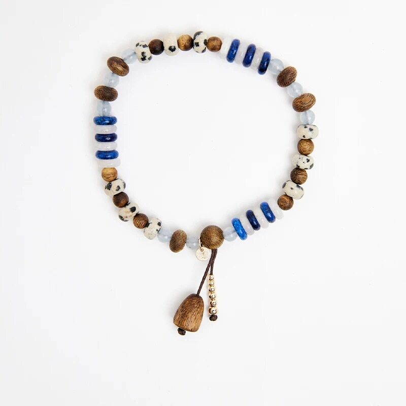 回声木珠手链新中式简约大气董洁同款度假风蓝白色串珠手链
