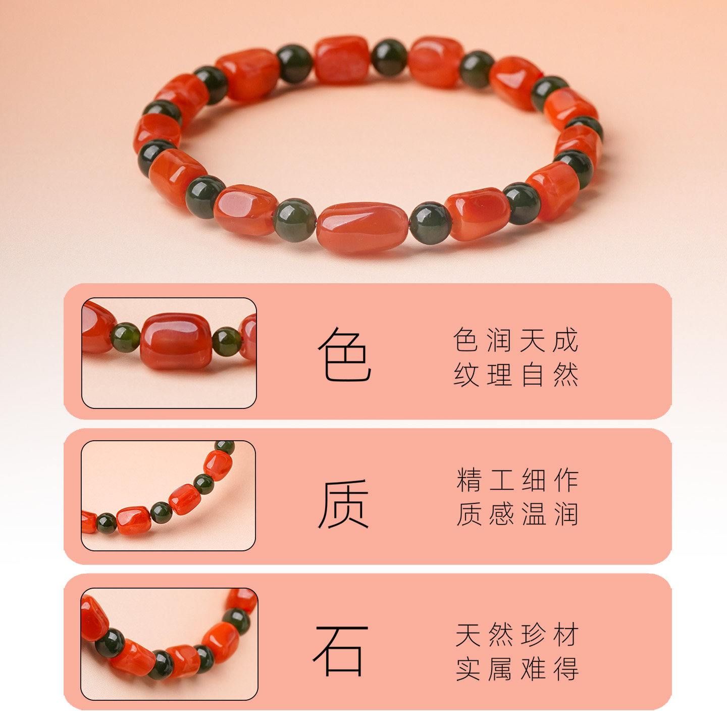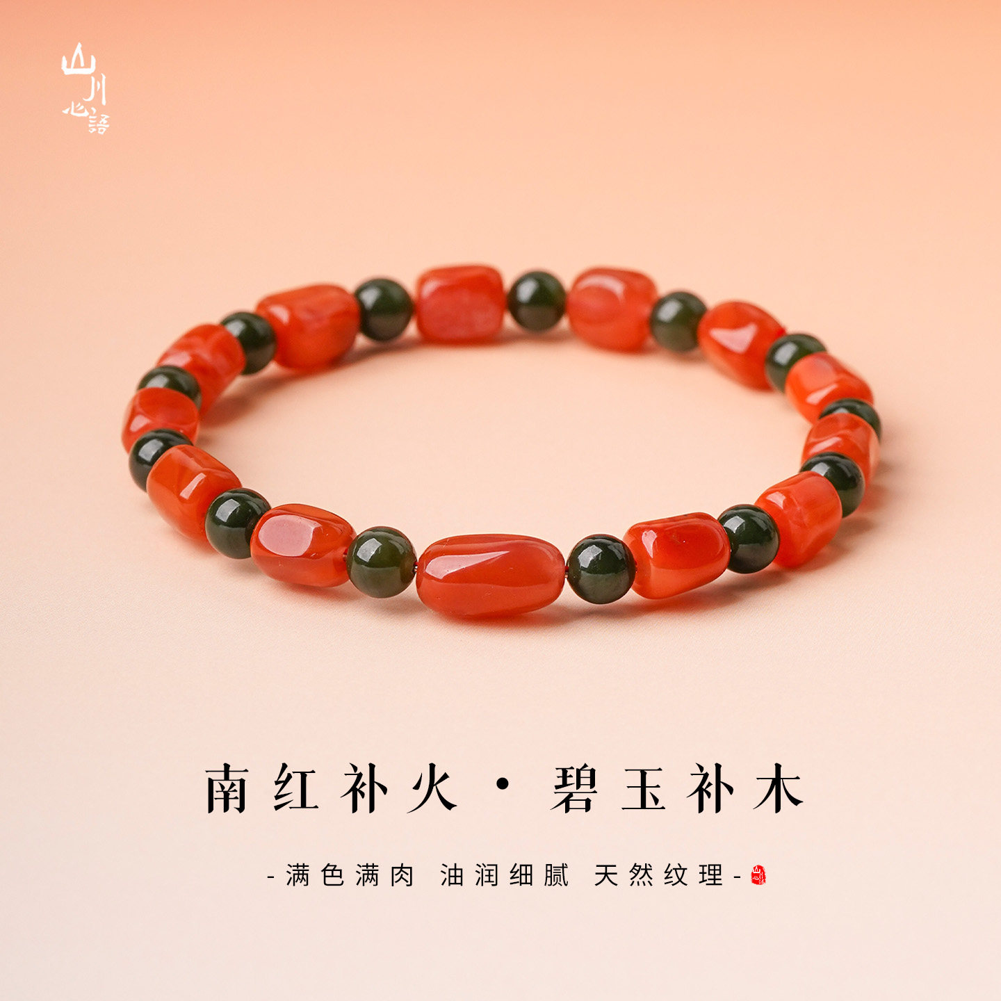 保山南红手串天然满肉火焰纹红玛瑙碧玉手链随形原矿柿子红色宝石