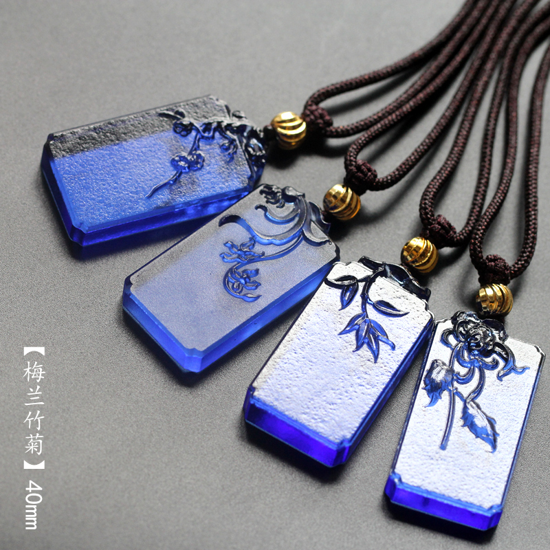 中国风古法琉璃梅 兰 竹菊吊坠吊坠挂件男女古法平安无事方牌项链