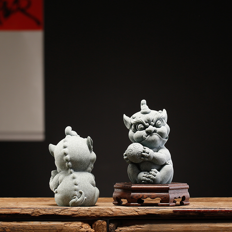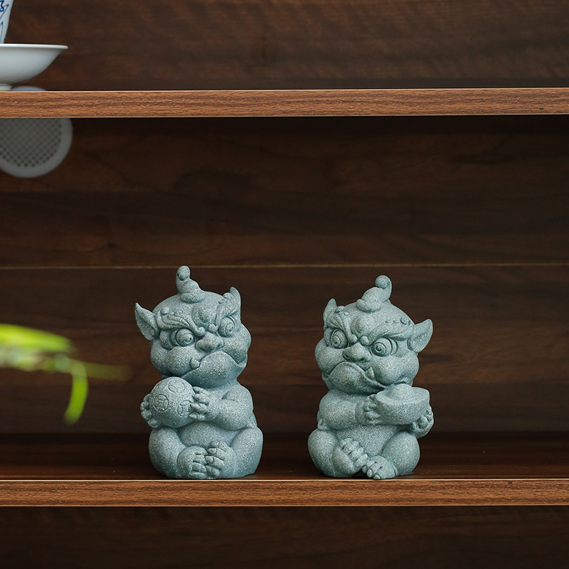 创意石狮子摆件一对国潮喜庆招财鱼缸造景新中式家居客厅桌面装饰