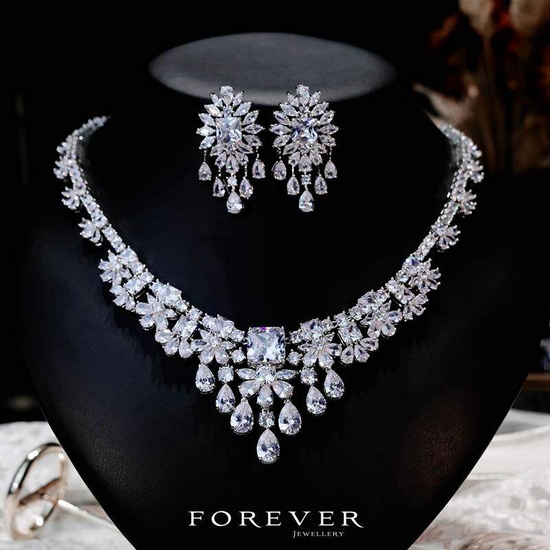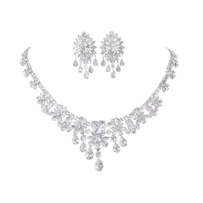 新娘项链耳环套装锆石婚礼纱饰品结婚晚宴会首饰奢华晚礼服配饰闪
