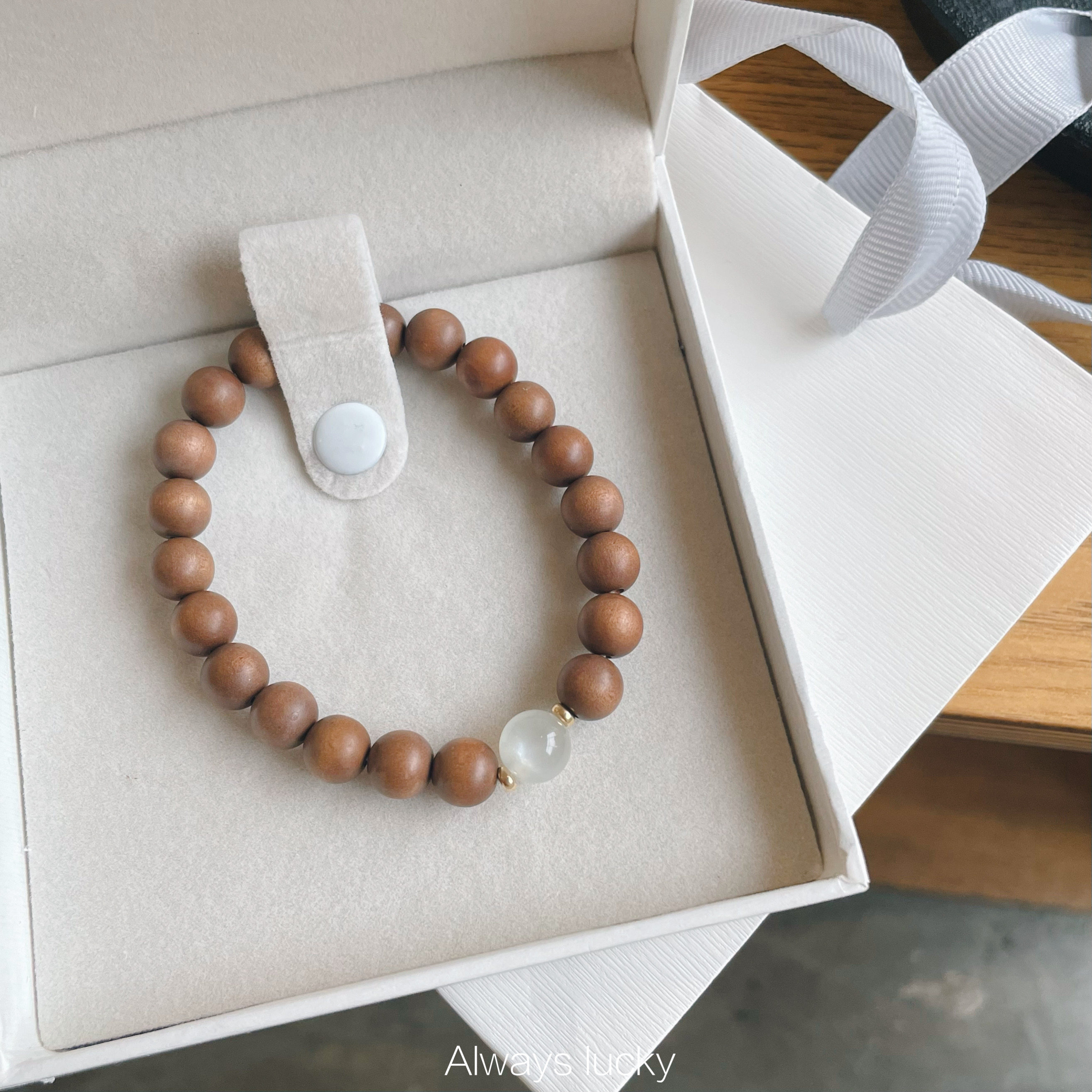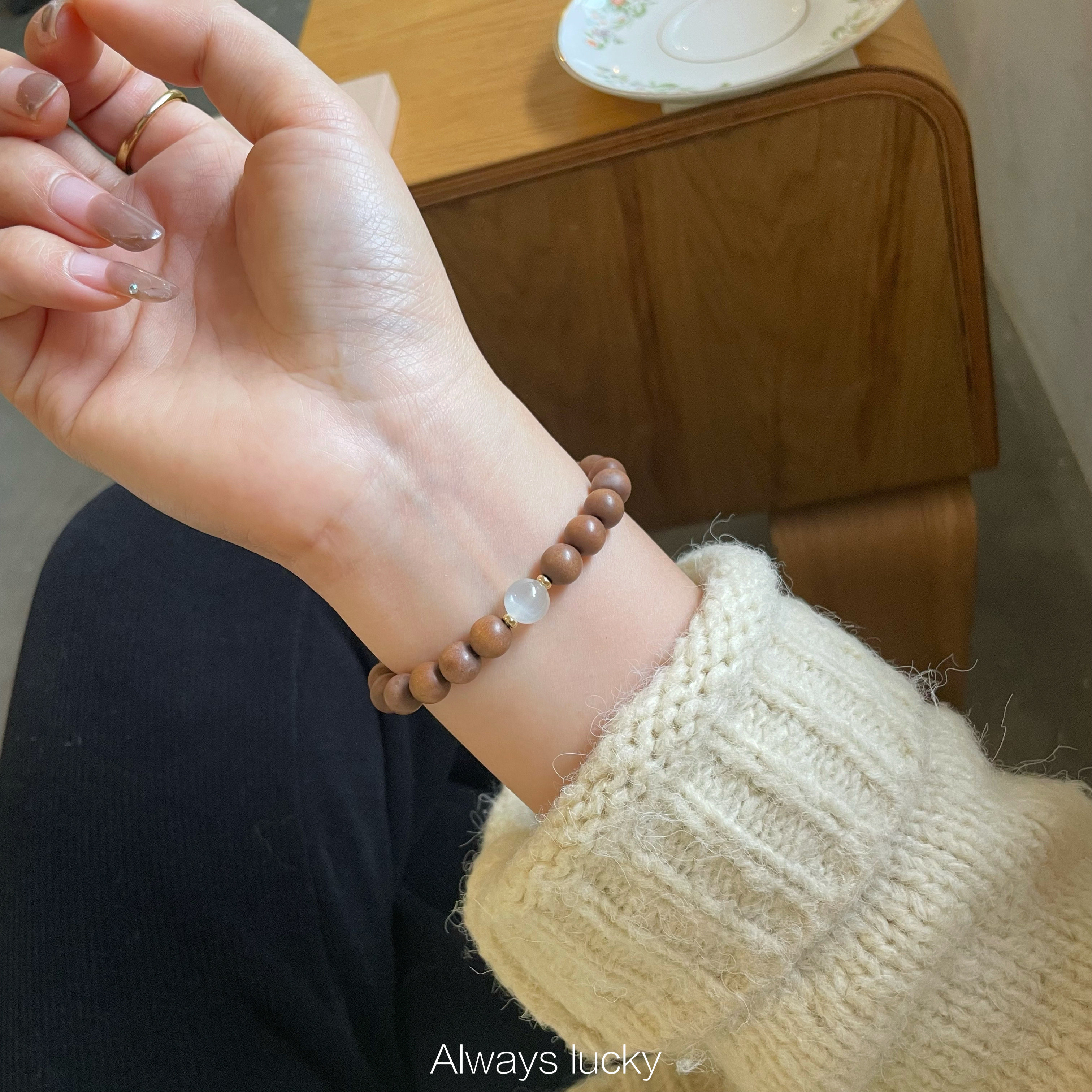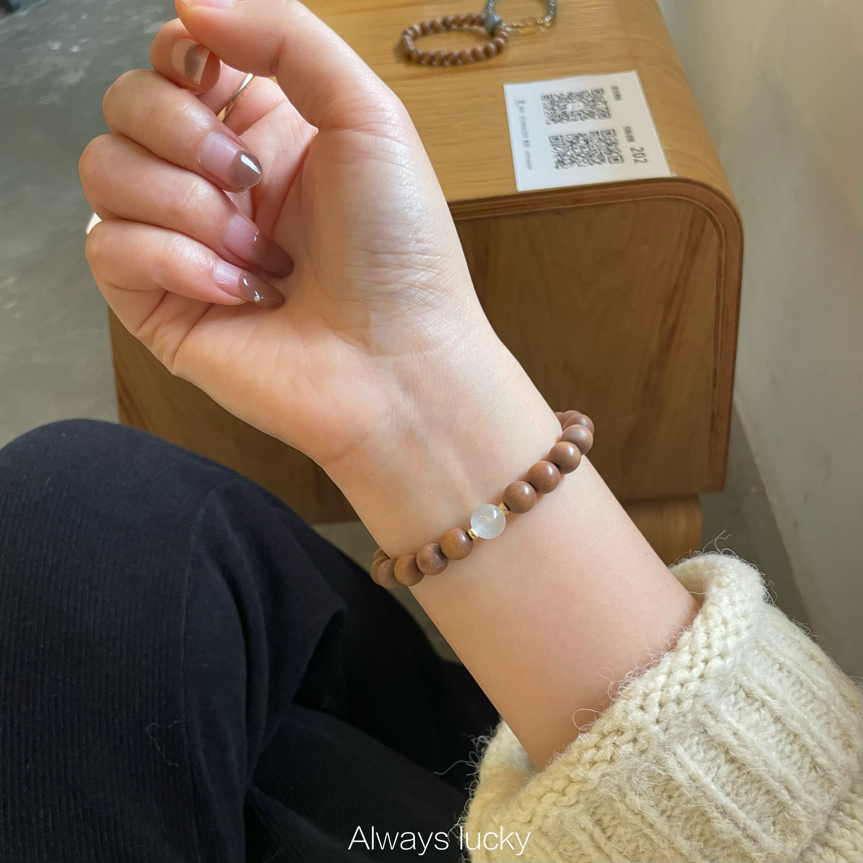 「白月光」老山檀天然印度迈索尔简约文玩珠串原创手作创意手链女