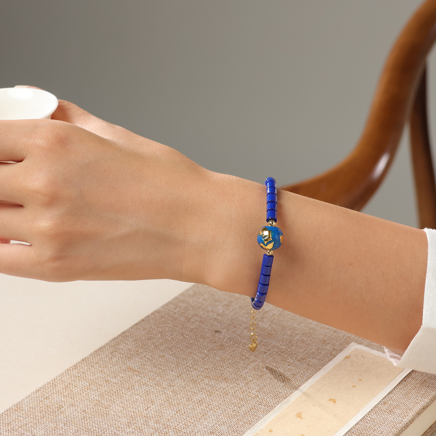 天然蓝矿石材质沙金珐琅调节转运珠蓝色手串手饰手链女高级感手串