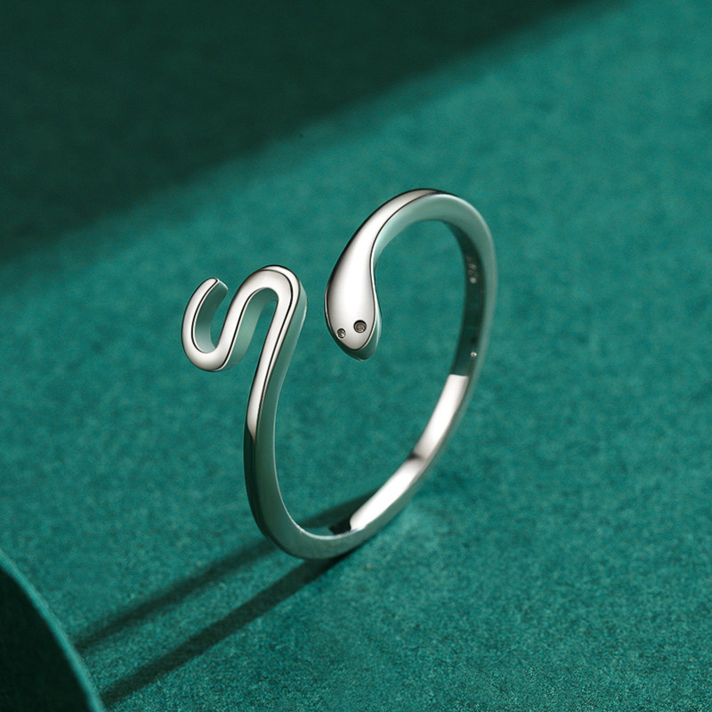 摩典通体s925银韩版气质个性蛇形戒指女时尚设计指环简约小蛇手饰