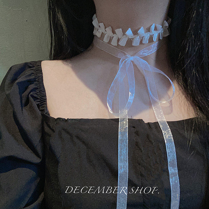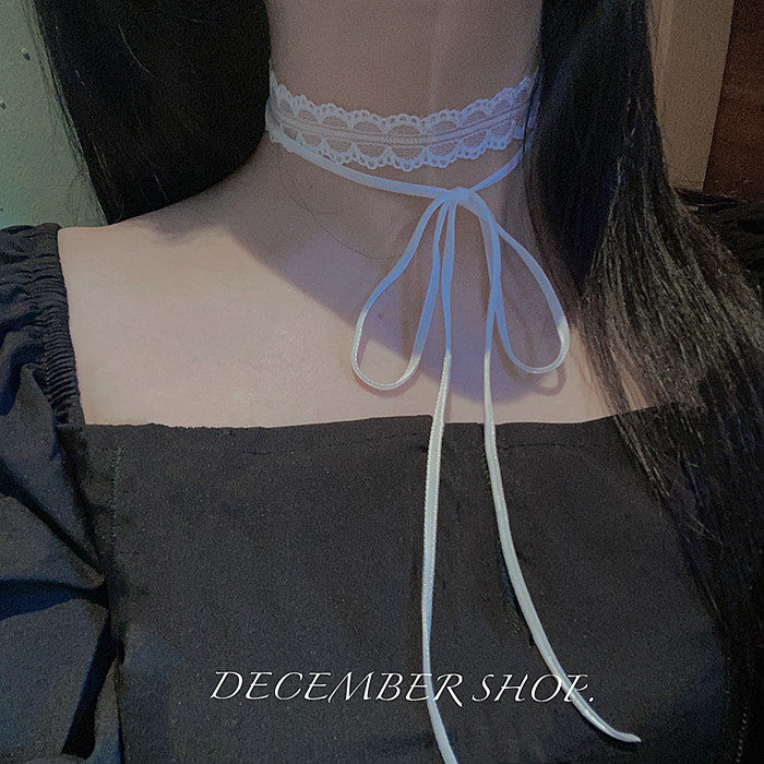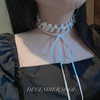 夏季新款白色蕾丝双层项链蝴蝶结仙女choker项圈锁骨链小花颈带