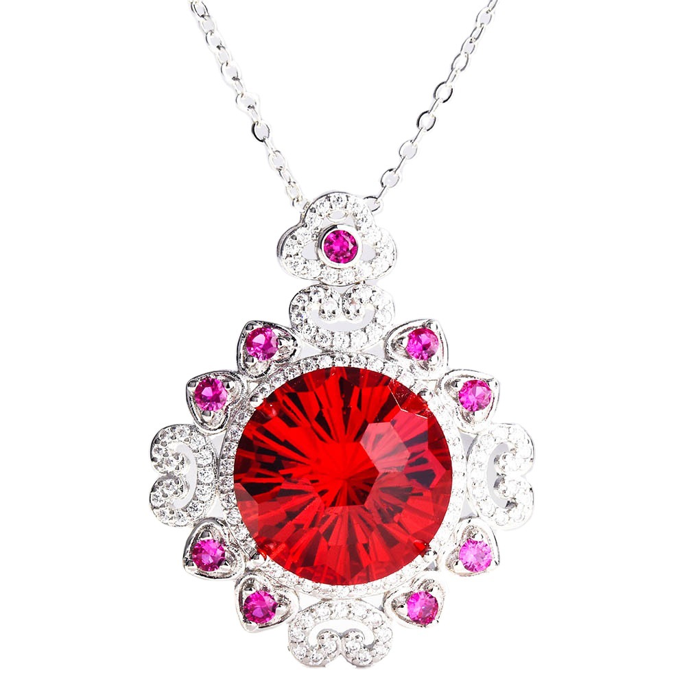 抖音快手直播爆款镶嵌仿天然鸽血红宝石吊坠 镀白金黄钻彩宝项链