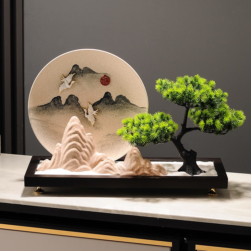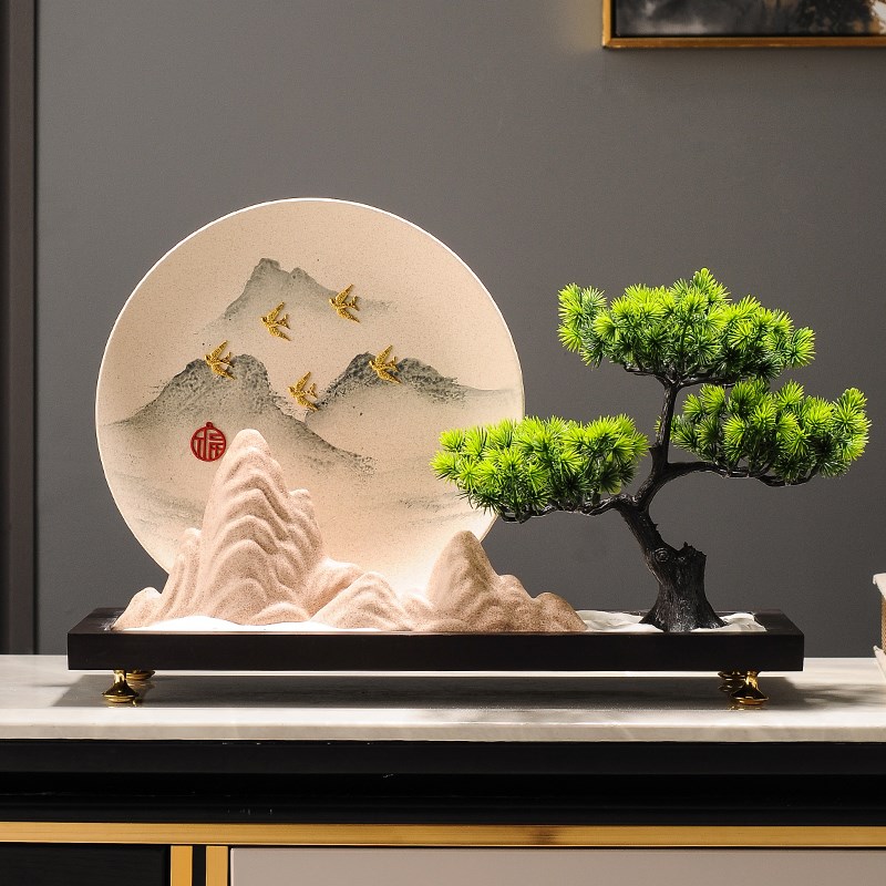 新中式沙盘摆件办公室书房装饰品迎客松创意酒T店进门玄关工艺品