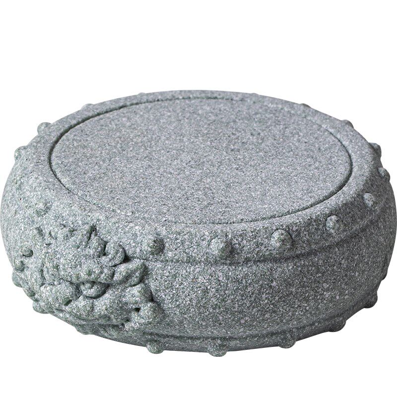 中式麒麟兽首石鼓盖置茶宠摆件垫底杯垫底座配件客厅桌面造景装饰
