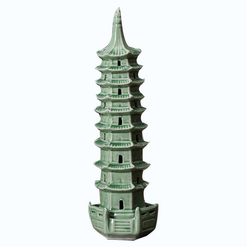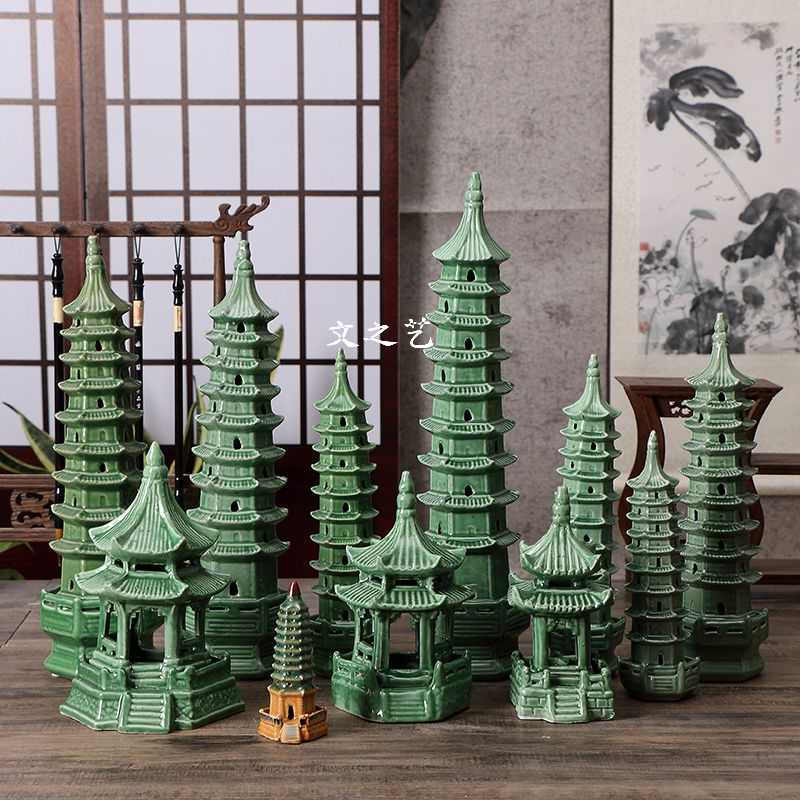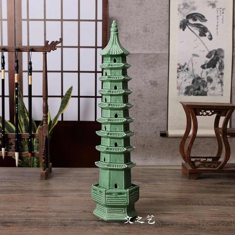 绿色办公室摆件大号九层陶瓷塔书房假山造景装饰中式客厅简约水缸