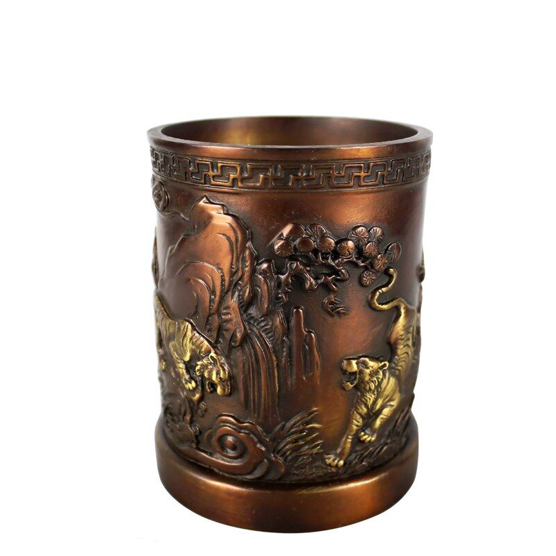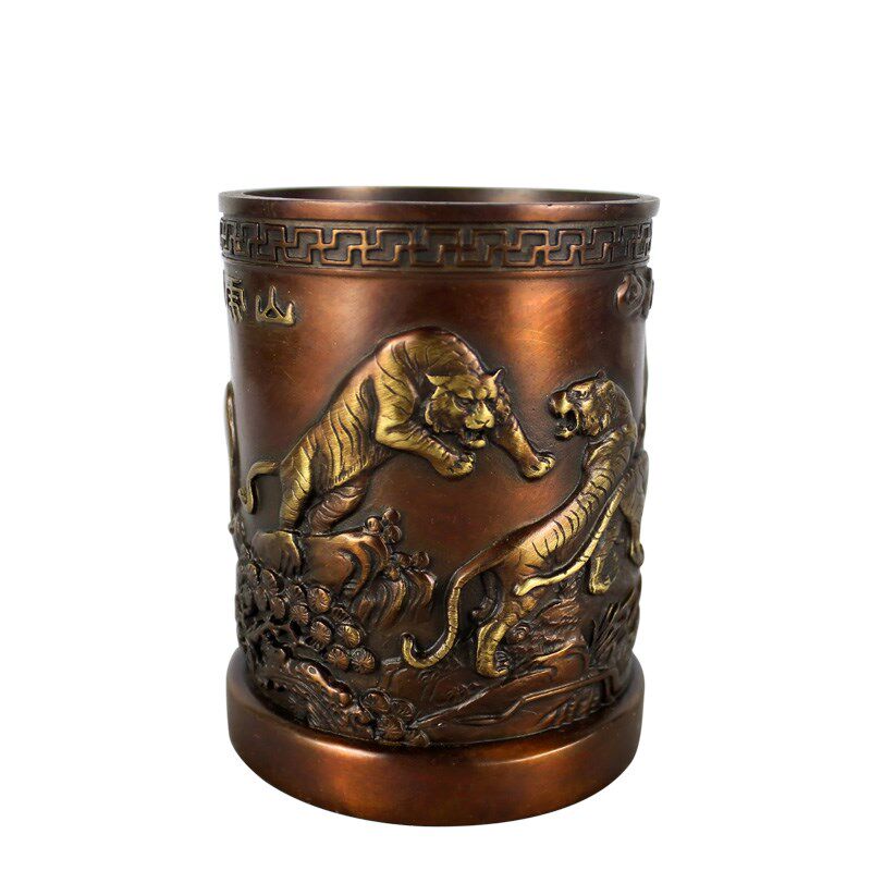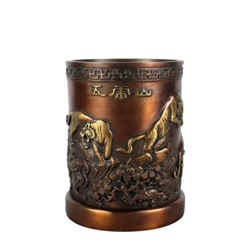 大仕缘 铜工艺品笔筒摆件商务送老师礼品 书房学习用品五虎笔筒