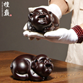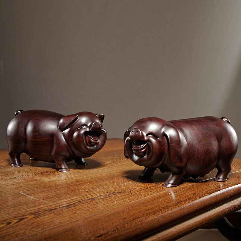 黑檀实木猪摆件木质雕刻十二生肖小猪的吉祥物家居装饰红木工艺品