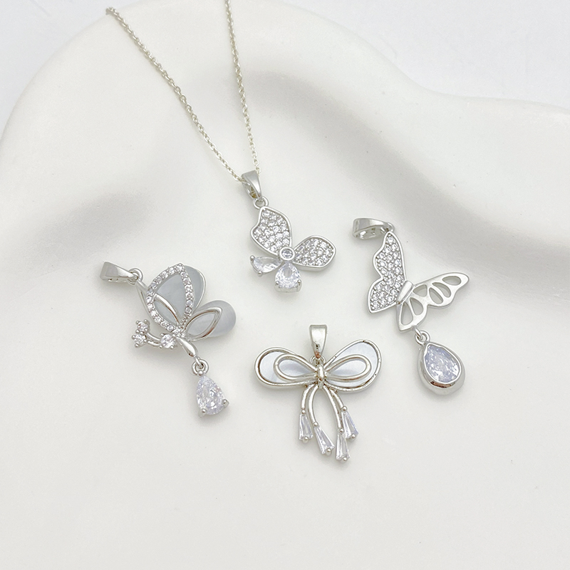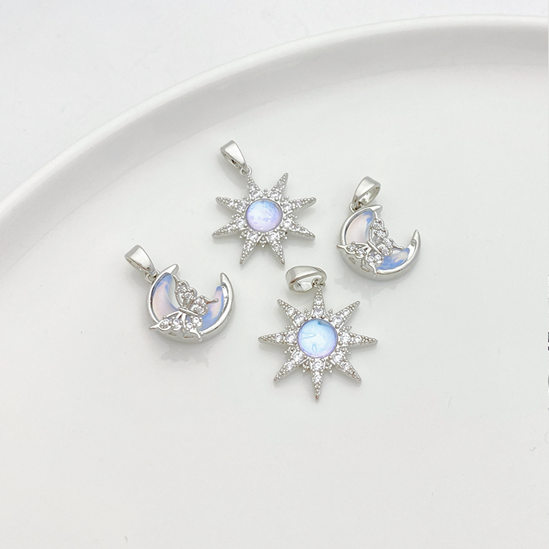 白金色保色镶锆石蝴蝶月亮芒星吊坠手工diy手链项链饰品材料配件