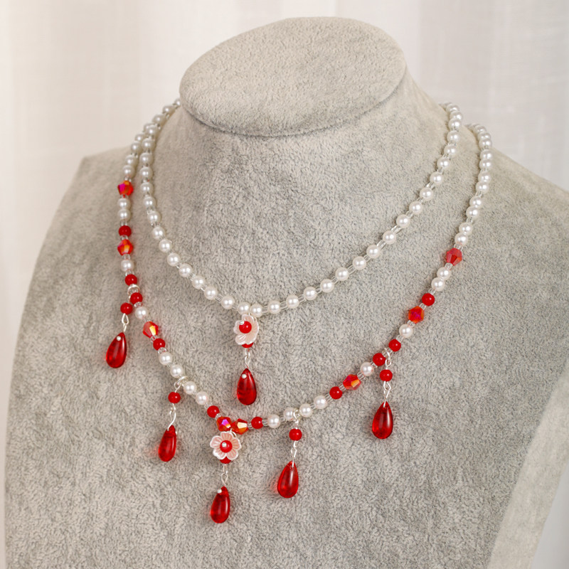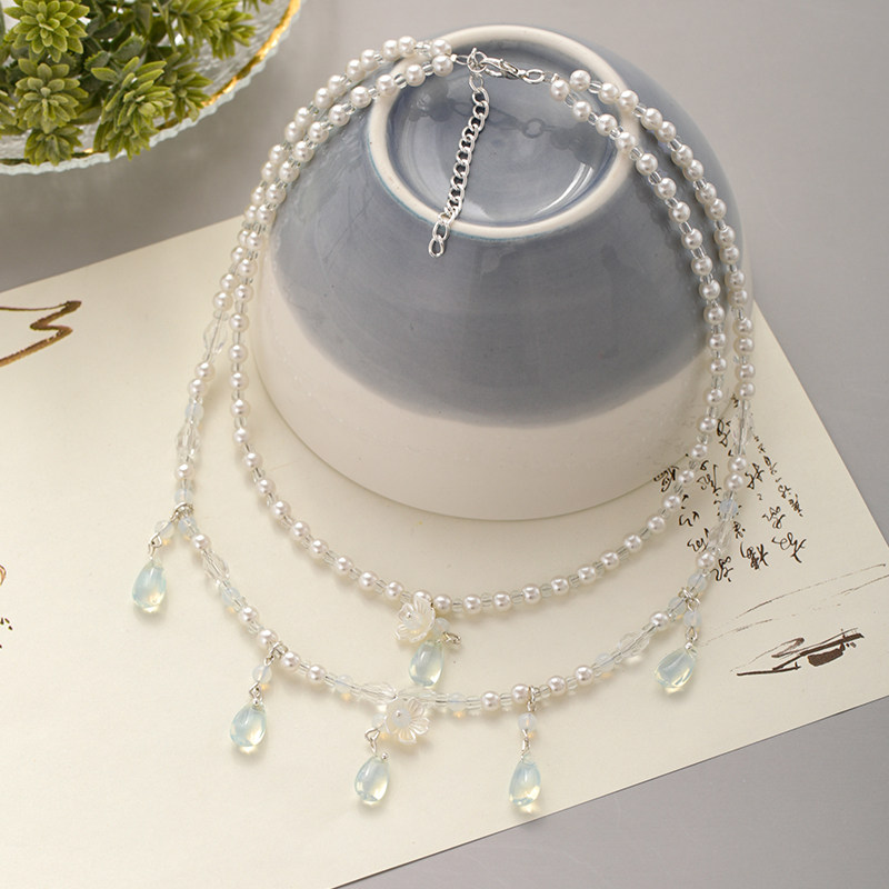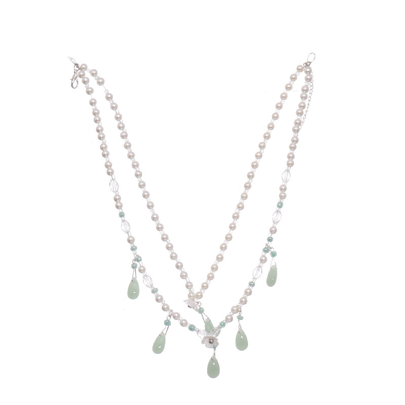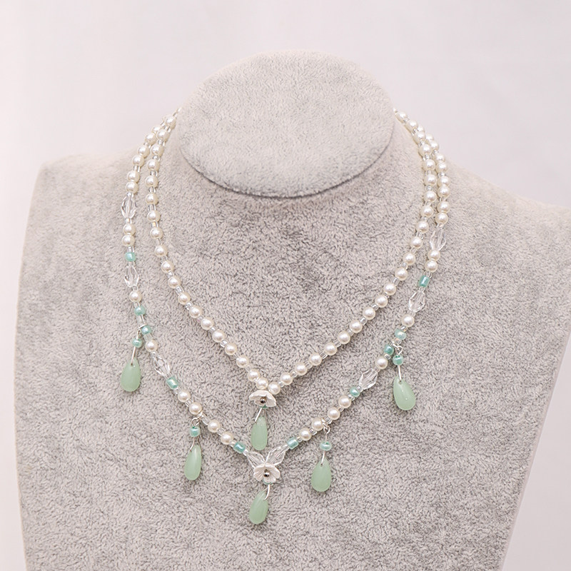璎珞项圈汉服配饰手工双层珍珠项圈绿色明制坦领项链软璎珞古风