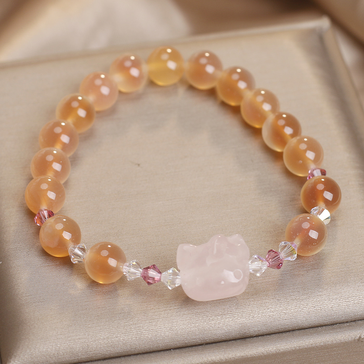 天然橙色糖心玛瑙手链女款轻奢甜美可爱粉晶猫咪手串送闺蜜礼物