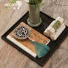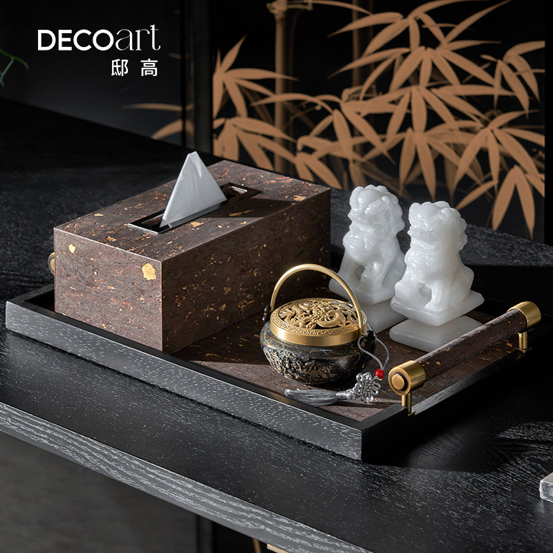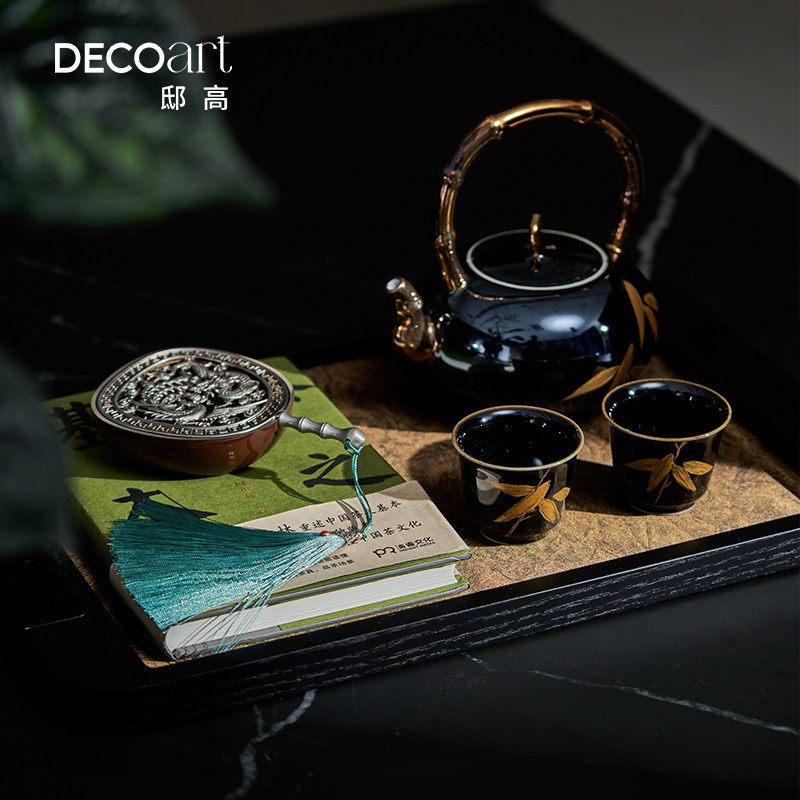 民宿酒店茶楼茶室茶空间黑色陶瓷茶具托盘氛围感纯铜香炉桌面摆件